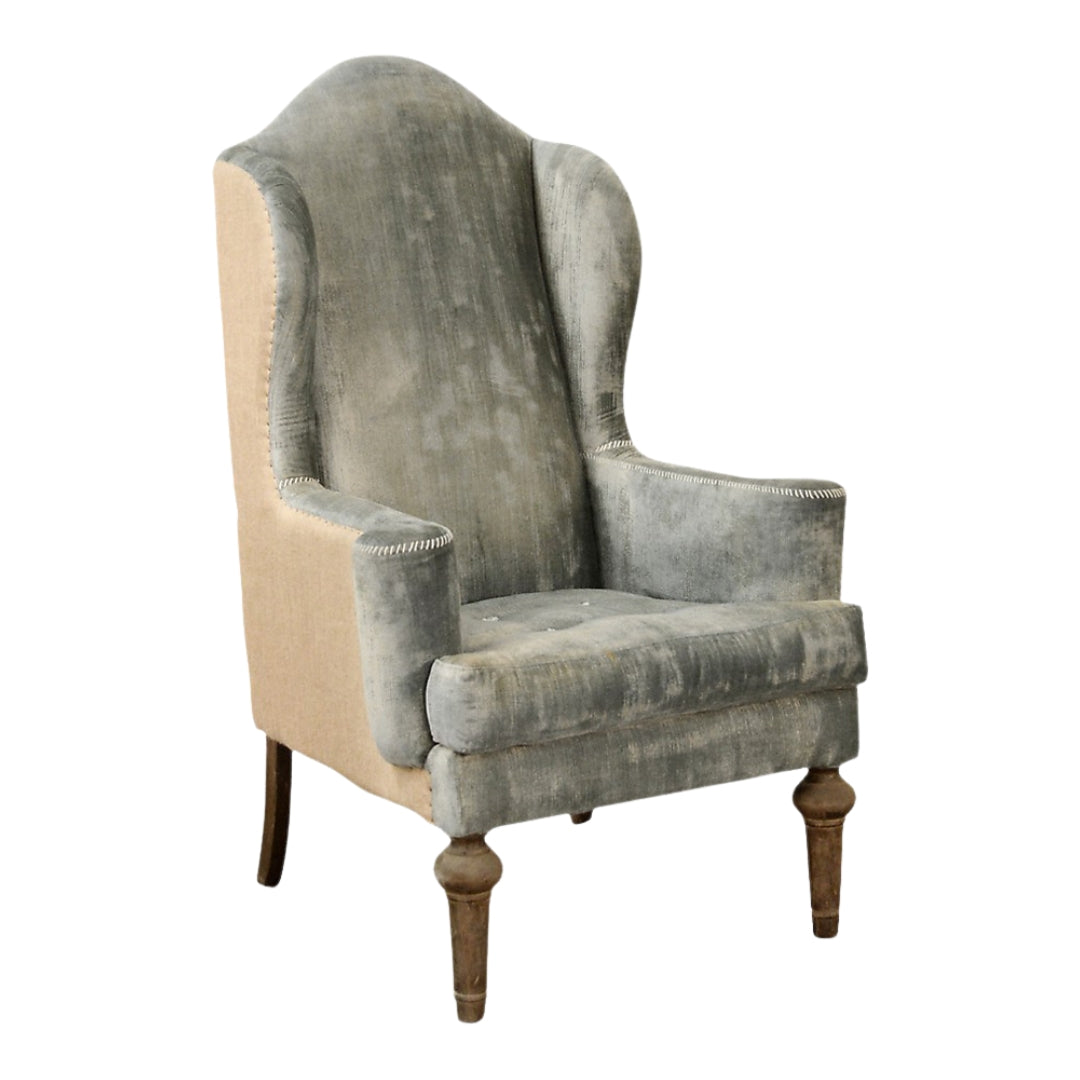 La poltrona in velluto blu e tela di iuta abbina un soffice rivestimento in velluto a uno schienale in tela di iuta testurizzata, creando un look elegante e accogliente. Caratterizzata da uno schienale alto, braccioli elegantemente curvi e gambe tornite tradizionali, offre comfort e stile duraturi. Questa sedia è un'aggiunta raffinata che dona calore e carattere a qualsiasi spazio.