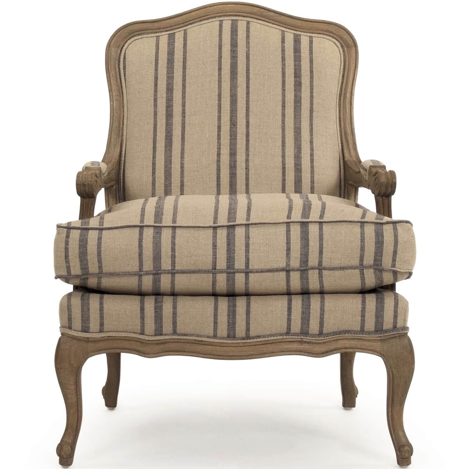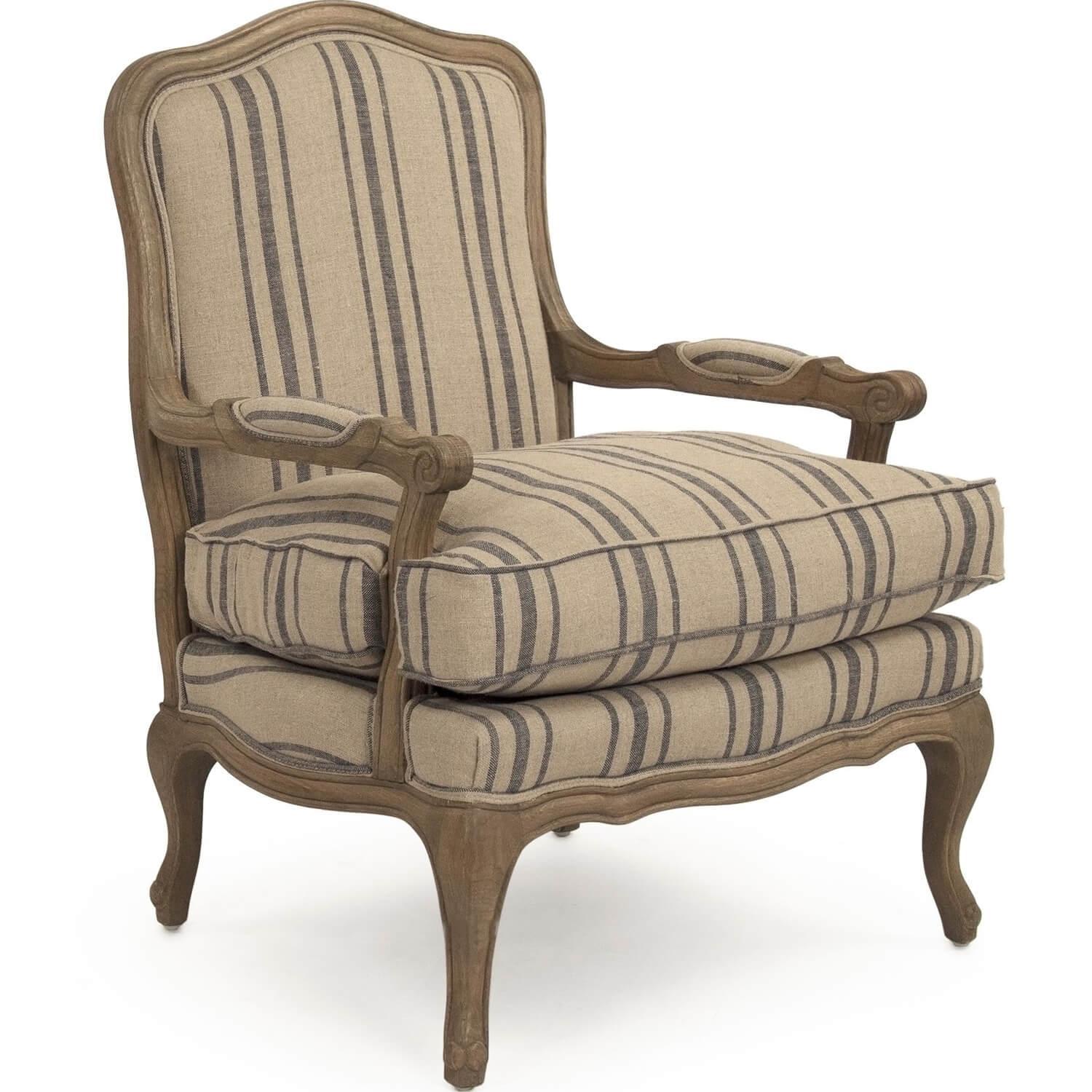 Accomodatevi su questa straordinaria poltrona imbottita per il soggiorno! Immaginate quanto si abbinerà alla perfezione il tessuto in lino a righe blu al vostro arredamento in stile francese o cottage. Il design elegante si abbina perfettamente alle gambe intagliate in stile classico e alla finitura in legno invecchiato.