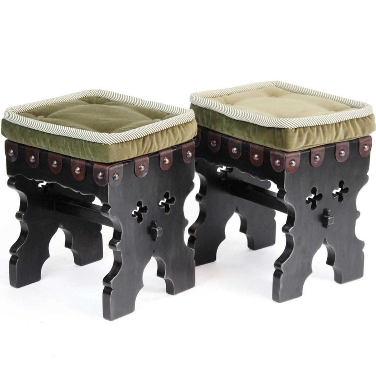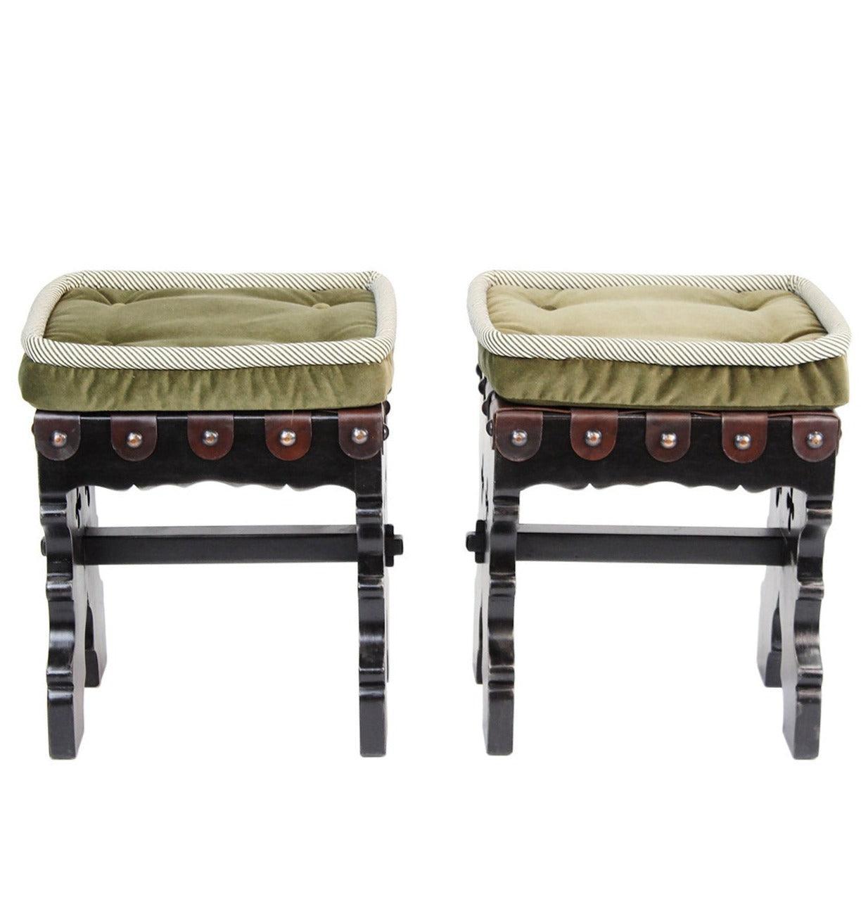 In perfetto stile spagnolo del XVII secolo, gli sgabelli King Ferdinand in pelle e velluto sono robusti ma leggeri, perfetti per qualsiasi ambiente della casa. Ideali per un mobiletto da toeletta o un armadio, e per completare un'area salotto attorno a un tavolino da cocktail. Per un comfort extra, il coprimaterasso francese spesso 7,6 cm è il tocco perfetto per rendere questo modello un classico.