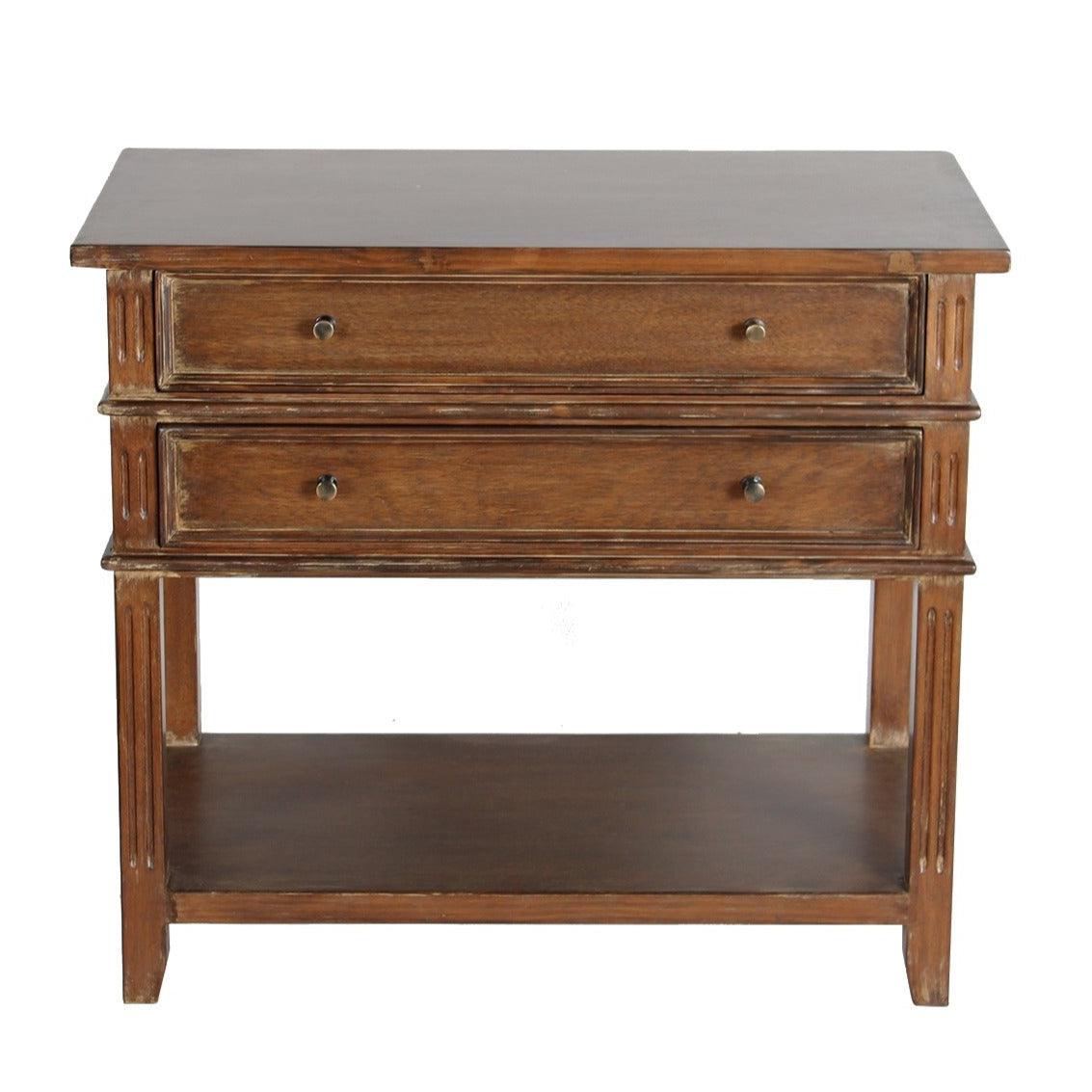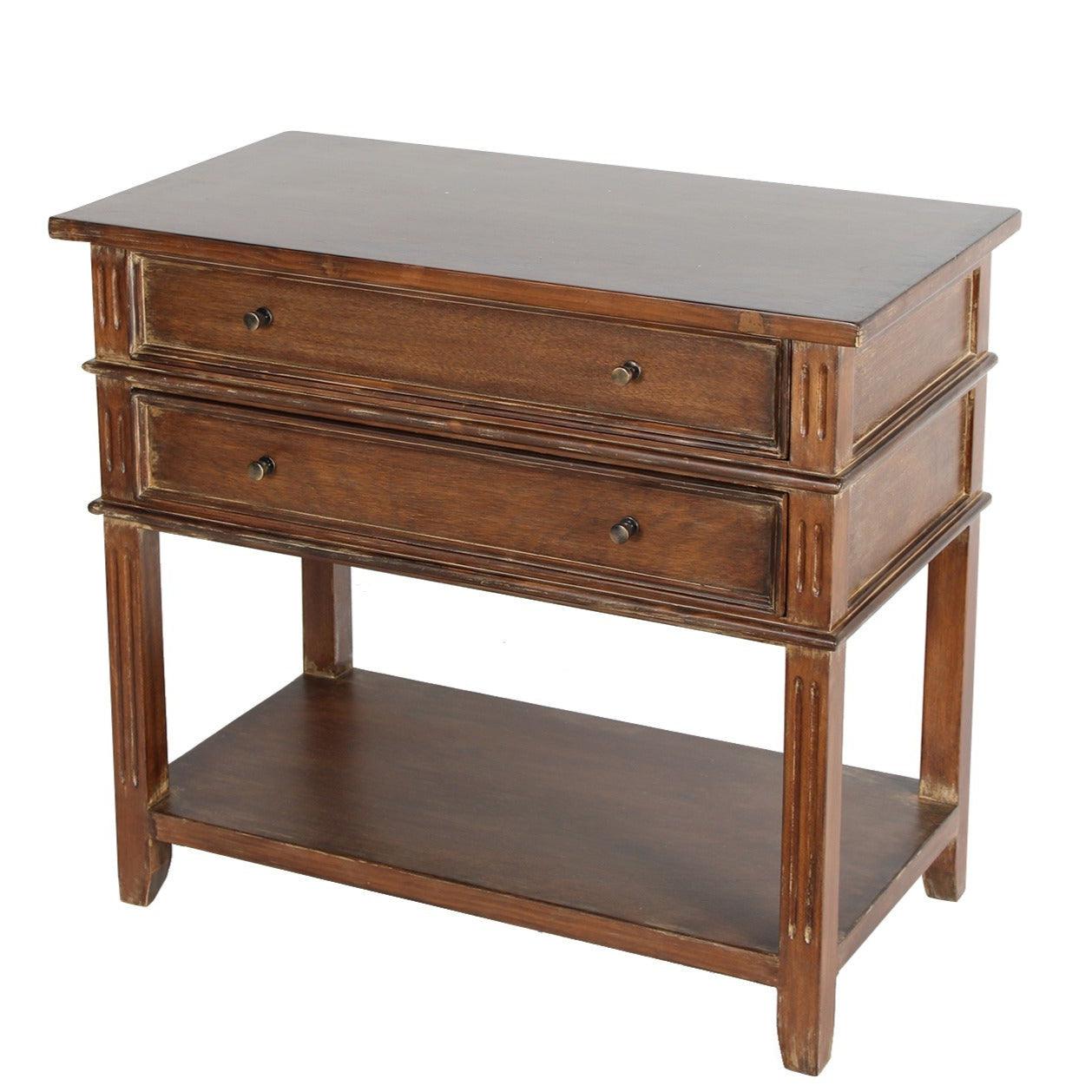 Aggiungi un fascino senza tempo al tuo spazio con questo comodino classico, realizzato a mano. Caratterizzato da una calda finitura marrone, eleganti dettagli intagliati, due ampi cassetti e un ripiano inferiore, è perfetto per camere da letto, soggiorni o corridoi: sia bello che pratico.