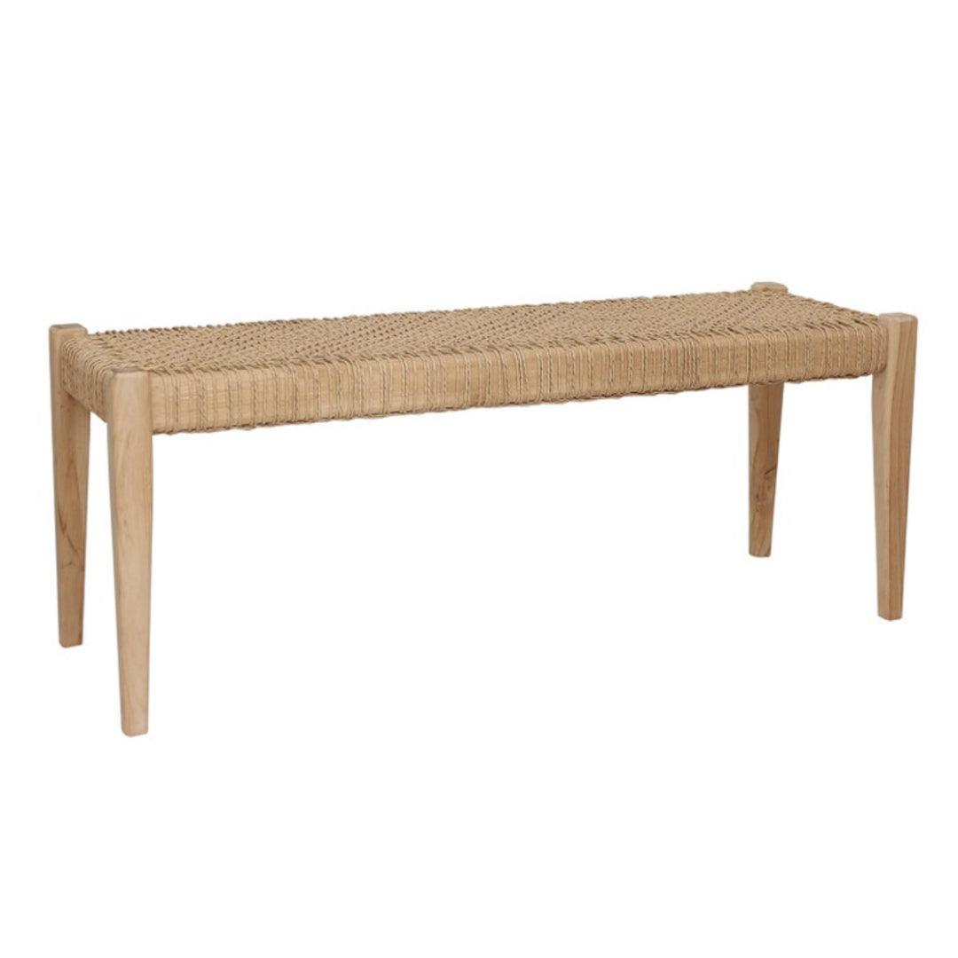 Lasciatevi conquistare dalla bellezza della nostra panca Cameo intrecciata in legno naturale. È sapientemente realizzata a mano in splendido legno di teak da piantagione, e le venature naturali della struttura sono semplicemente meravigliose. La seduta è realizzata in polyhyacinth con un design intrecciato davvero creativo, che aggiunge un tocco unico e sofisticato. Un mobile davvero raffinato, perfetto sia per gli interni che per gli spazi esterni.
