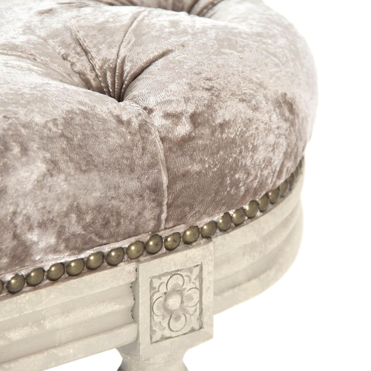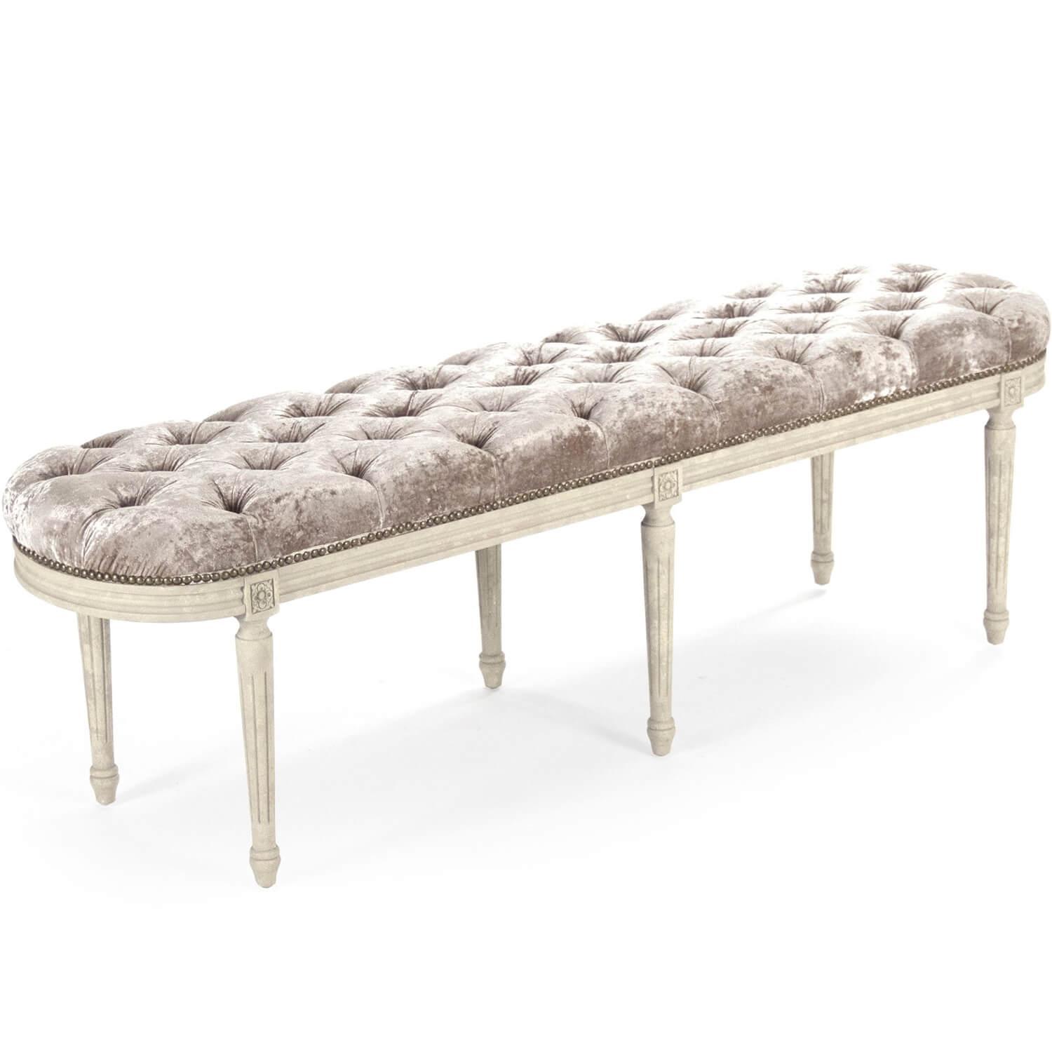 Semplicemente lussuosa, la panca trapuntata in velluto champagne è una splendida aggiunta a una camera da letto romantica o a qualsiasi altro spazio sofisticato. Una base meticolosamente intagliata a sei gambe offre un supporto robusto ma elegante, mentre il rivestimento in velluto champagne aggiunge un tocco sontuoso. La finitura avorio anticato aggiunge un tocco vintage, mentre i chiodi anticati completano il look.