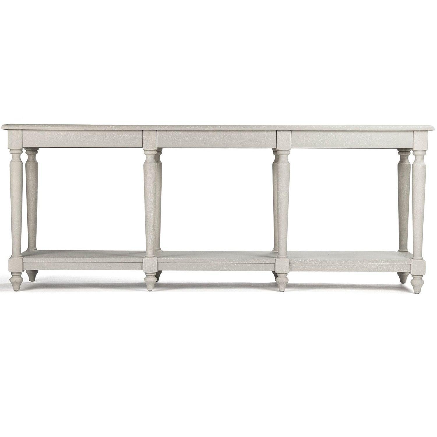 Un assaggio d'Alsazia! Questo tavolo da buffet grigio chiaro in stile cottage trasformerà qualsiasi festa in qualcosa di speciale! Gli ospiti si riverseranno sul lungo e suggestivo buffet per assaggiare tutti i vostri piatti preferiti. Potete anche usare questo tavolo come consolle appoggiata alla parete per esporre i vostri tesori più preziosi. Ampio spazio è disponibile anche sulla mensola sottostante.