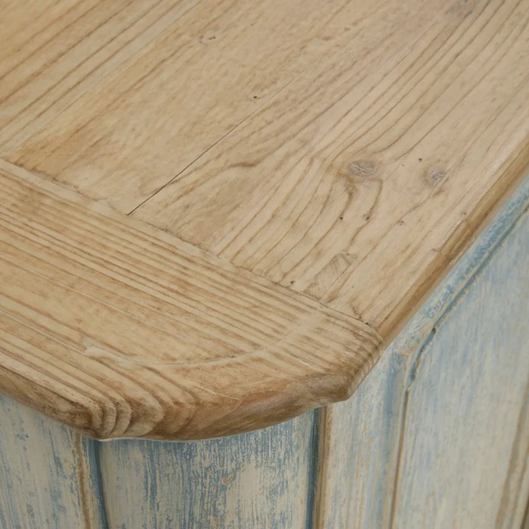 Aggiungi fascino e carattere alla tua casa con la credenza Distressed Blue Vintage. Rifinita in un blu delicatamente invecchiato, dona un tocco vintage e raccolto a qualsiasi spazio. Dietro le quattro ante a pannello, troverai ampio spazio per riporre piatti, biancheria o oggetti essenziali di tutti i giorni. Con la sua silhouette classica e lo stile versatile, si adatta perfettamente ad arredi rustici, rustici o di ispirazione boho, aggiungendo non solo spazio, ma anche personalità alla tua stanza.