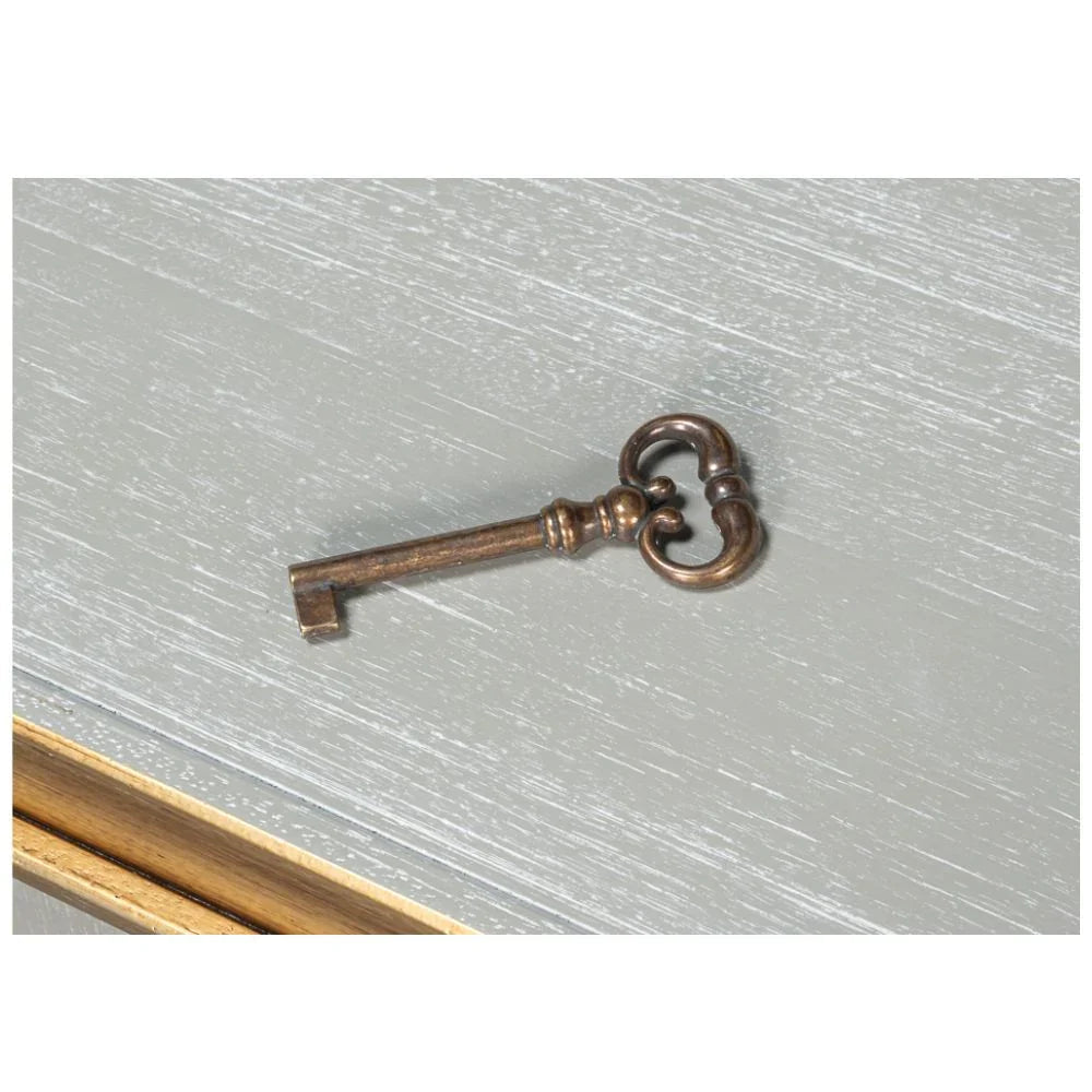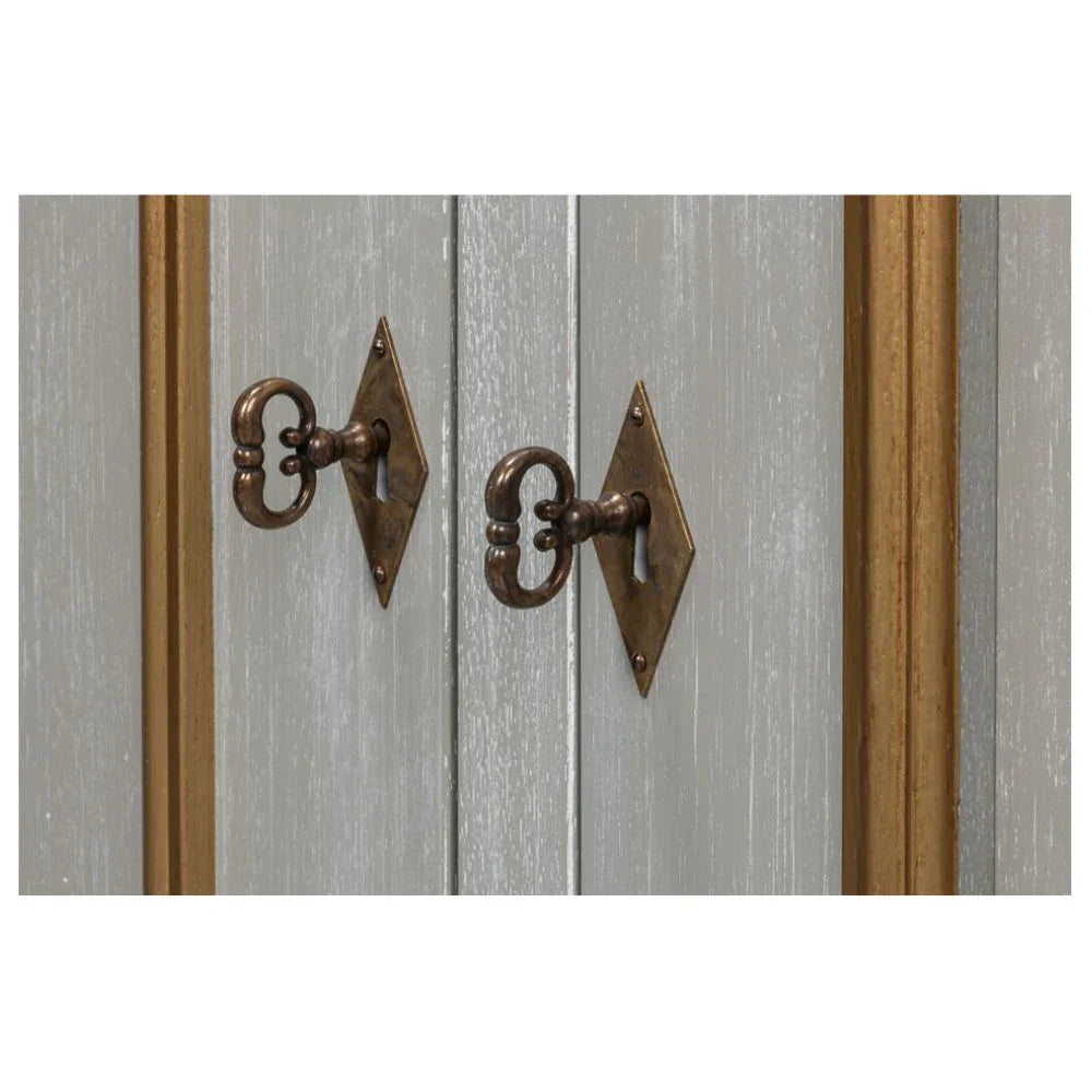 Questa elegante credenza è un tesoro senza tempo, frutto di una lavorazione artigianale di alto livello. La sua impeccabile finitura grigio anticato è splendidamente impreziosita da ricchi accenti dorati, creando un pezzo d'arredo di grande impatto. Dietro le tre ante si nasconde un ampio spazio contenitivo. Che venga utilizzata come credenza per la sala da pranzo, come credenza per l'ufficio o come raffinata consolle multimediale, questa credenza diventa senza sforzo il fulcro di qualsiasi ambiente.