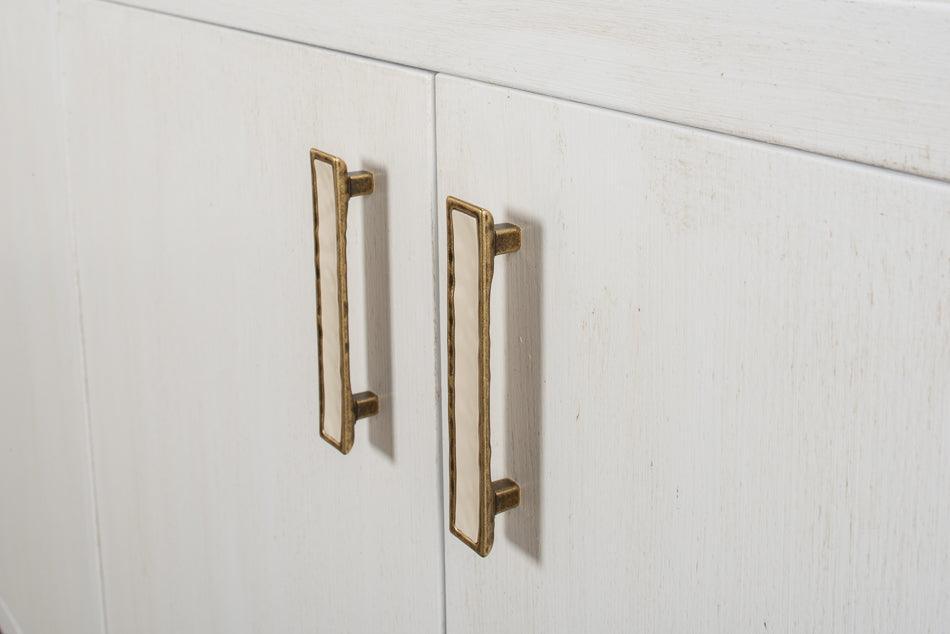 La credenza Parisian White a quattro ante dona un'estetica pulita alla tua casa, offrendo al contempo ampio spazio per i tuoi oggetti preferiti. Le quattro ante si aprono svelando due ripiani regolabili per un ampio spazio. Il design grezzo e la struttura impiallacciata in frassino conferiscono a questo pezzo un colore neutro che si abbina a qualsiasi ambiente. Questa credenza dal fascino parigino è proprio ciò di cui il tuo ingresso o il tuo soggiorno hanno bisogno per dare vita.