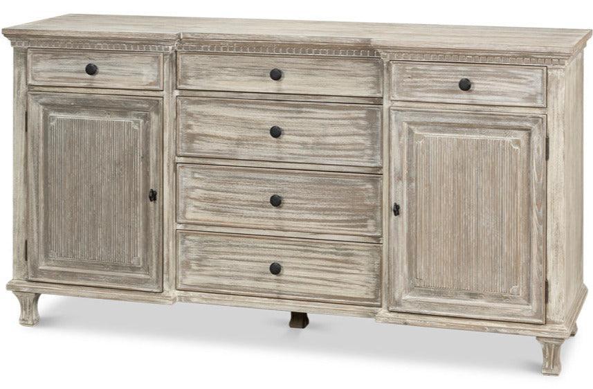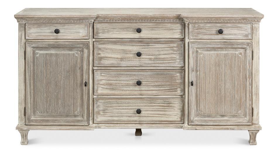 Con sei cassetti e due ante a ribalta, la credenza Sandstone Coastal Bungalow è sinonimo di servizio, stile ed eccellenza, tutto in un unico prodotto. Rifinita nell'esclusiva finitura Moonskin, questa credenza, un vero cavallo di battaglia, aggiungerà stile e personalità a qualsiasi soggiorno o sala da pranzo. I dettagli raffinati e la familiare forma europea rendono questa credenza un'aggiunta familiare ma al tempo stesso innovativa a qualsiasi casa.