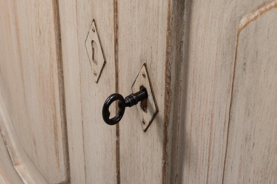 Questa credenza in legno intagliato Wrenn color grigio pietra porta una scossa di energia e raffinatezza nella vostra sala da pranzo. Il legno è rifinito con una tinta grigio pietra e ha una forma trapezoidale per un look splendido. Le due ante si aprono su un ampio spazio per riporre stoviglie o altri oggetti. Questo pezzo unico presenta dettagli intagliati ondulati lungo i bordi per un look intricato.