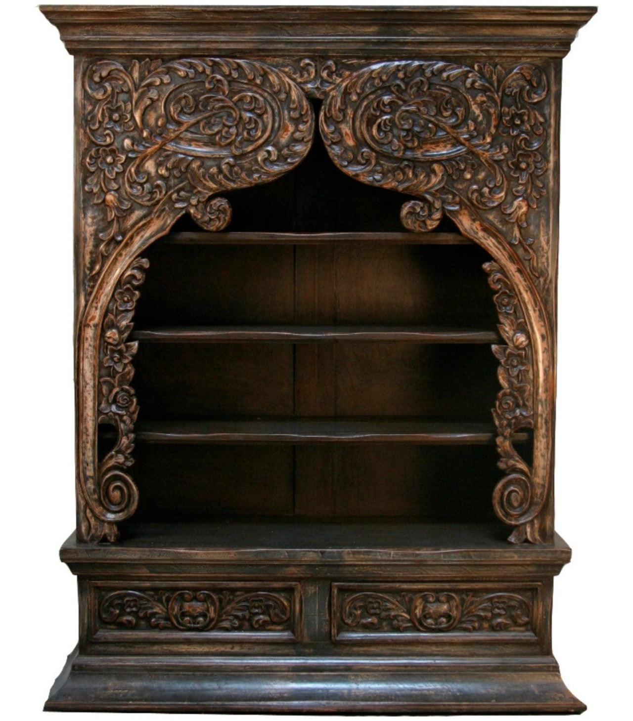 La vetrina Fleur Paradis è una vera e propria opera d'arte, con intricati intagli floreali sul frontale arcuato e sui cassetti inferiori. Questa splendida vetrina può essere utilizzata per esporre oggetti preziosi, cornici e libri. È dotata di tre ripiani e due cassetti.