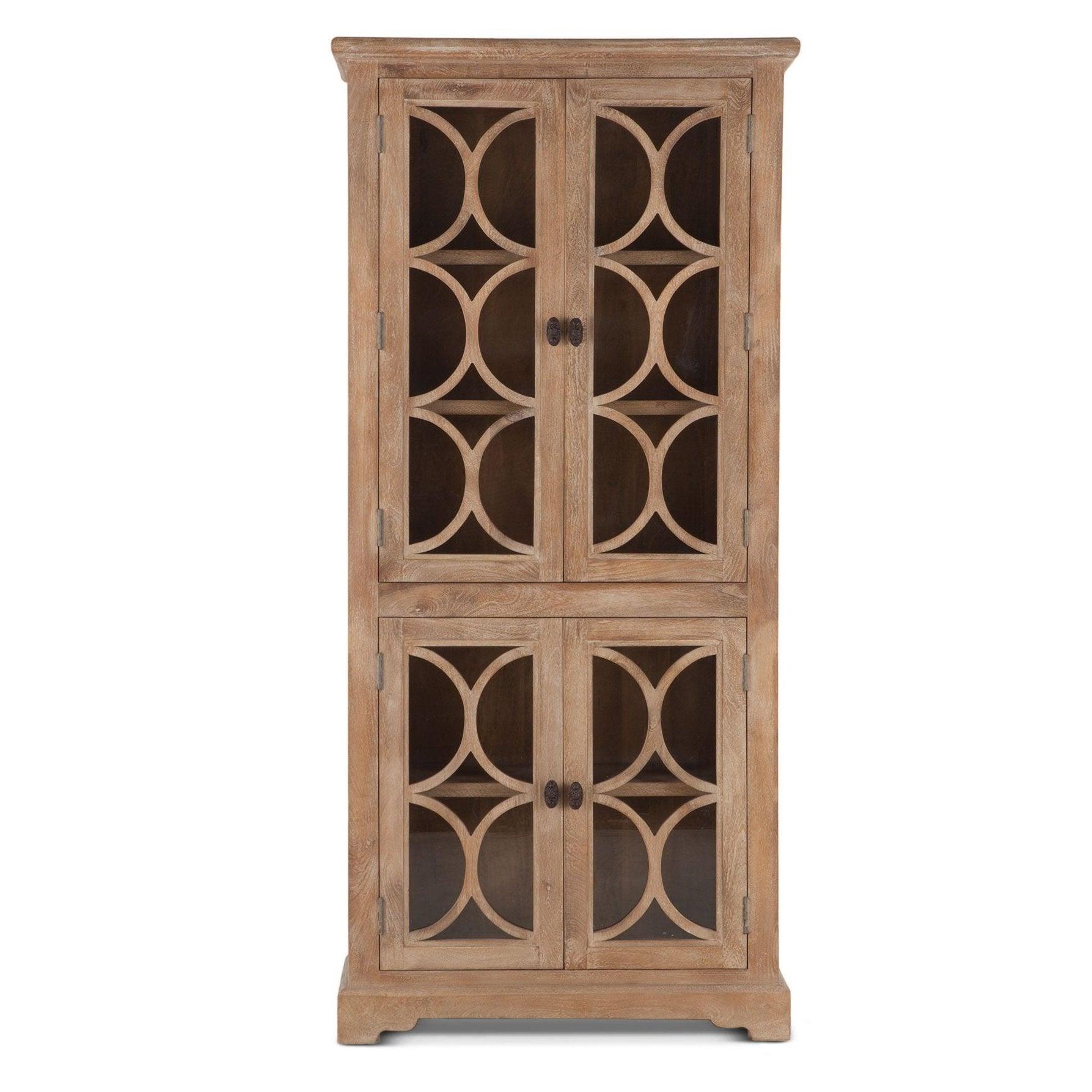 Valorizza la tua casa con la raffinata eleganza della nostra vetrina alta in stile rustico naturale in rovere anticato. Decorata con motivi a diamante curvi e ante in vetro, questa vetrina aggiunge un tocco di lusso a qualsiasi stanza. Con quattro ampi ripiani interni e accessori in metallo, è funzionale ed elegante.