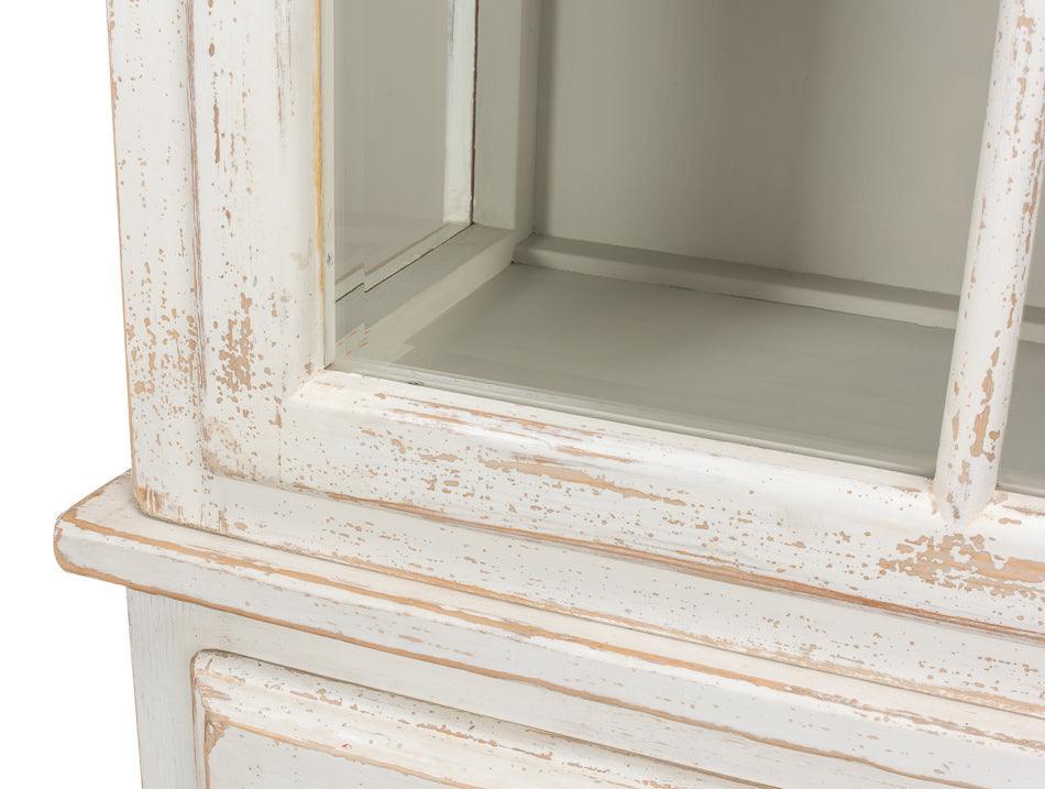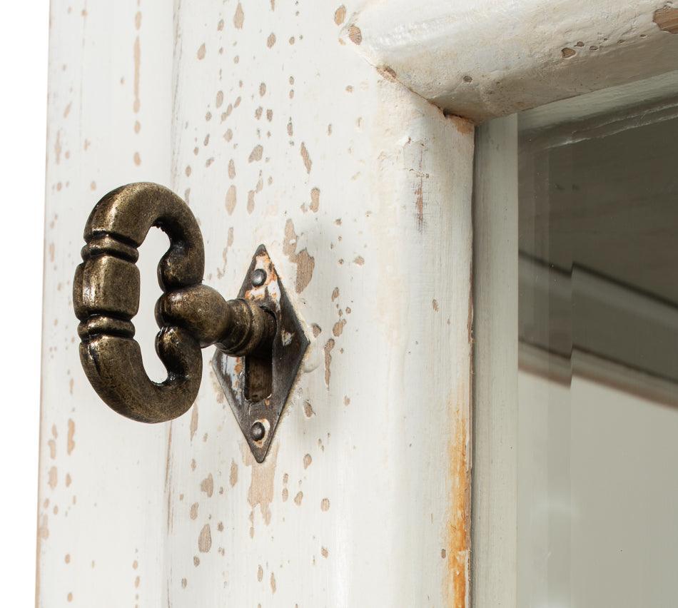 Alta e slanciata, la bella vetrina bianca anticata in stile cottage ha le dimensioni perfette per gli spazi più piccoli. La parte superiore è dotata di quattro scomparti dove è possibile riporre libri e altri tesori dietro ante in vetro trasparente con cornice. La cosa ancora più impressionante è che è possibile chiudere la vetrina superiore con chiavi vintage. L'anta inferiore ha quattro pannelli rialzati e anch'essa è dotata di serratura. La finitura leggermente anticata conferirà un'aria nostalgica a qualsiasi stanza.