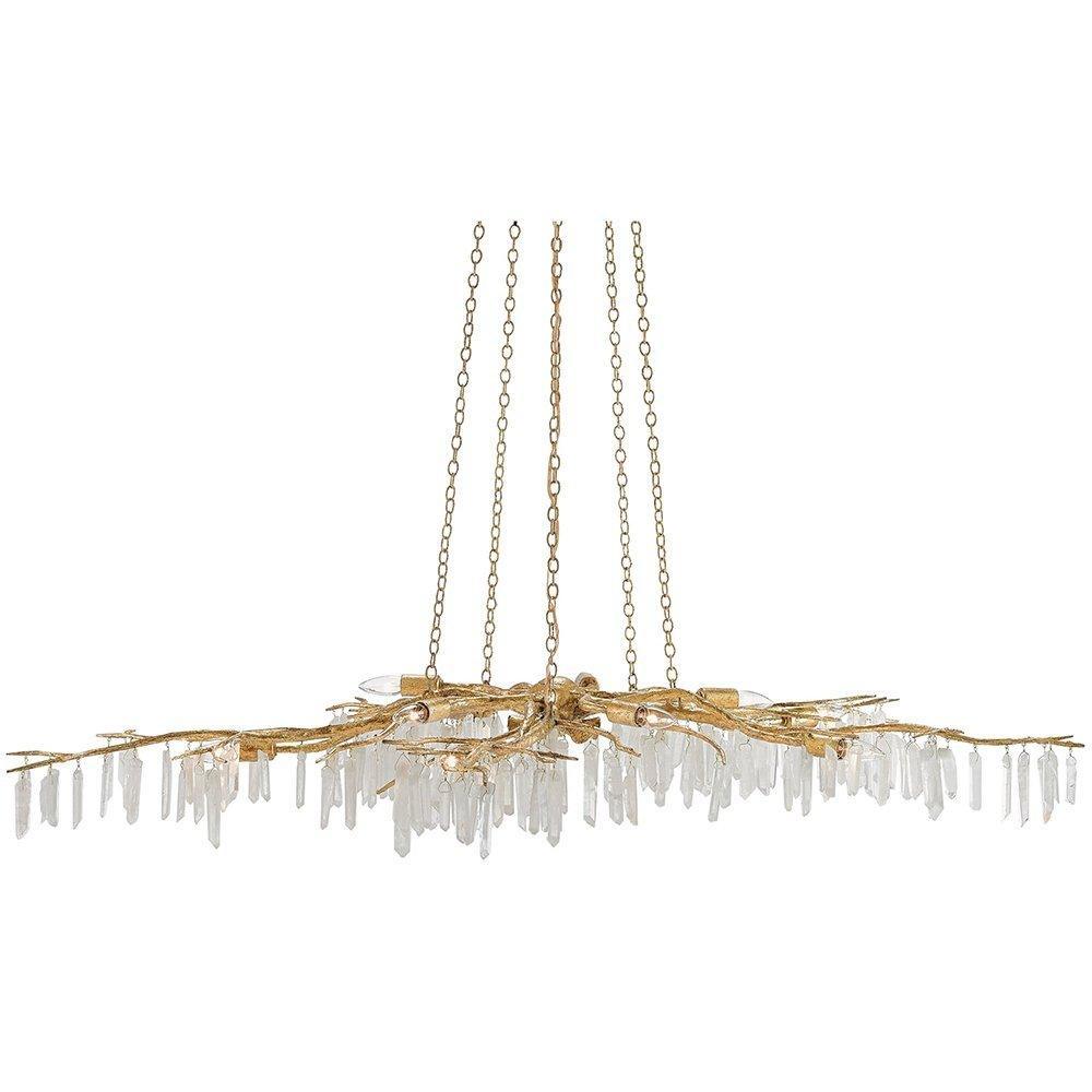 Il lampadario a forma di foresta in quarzo dorato è sospeso da sottili catene dorate e, con i suoi splendidi rami e cristalli naturali, offre un aspetto etereo. Questo splendido lampadario è realizzato in ferro battuto e rifinito in oro Lucerna lavato. Dieci luci forniscono un'illuminazione brillante.