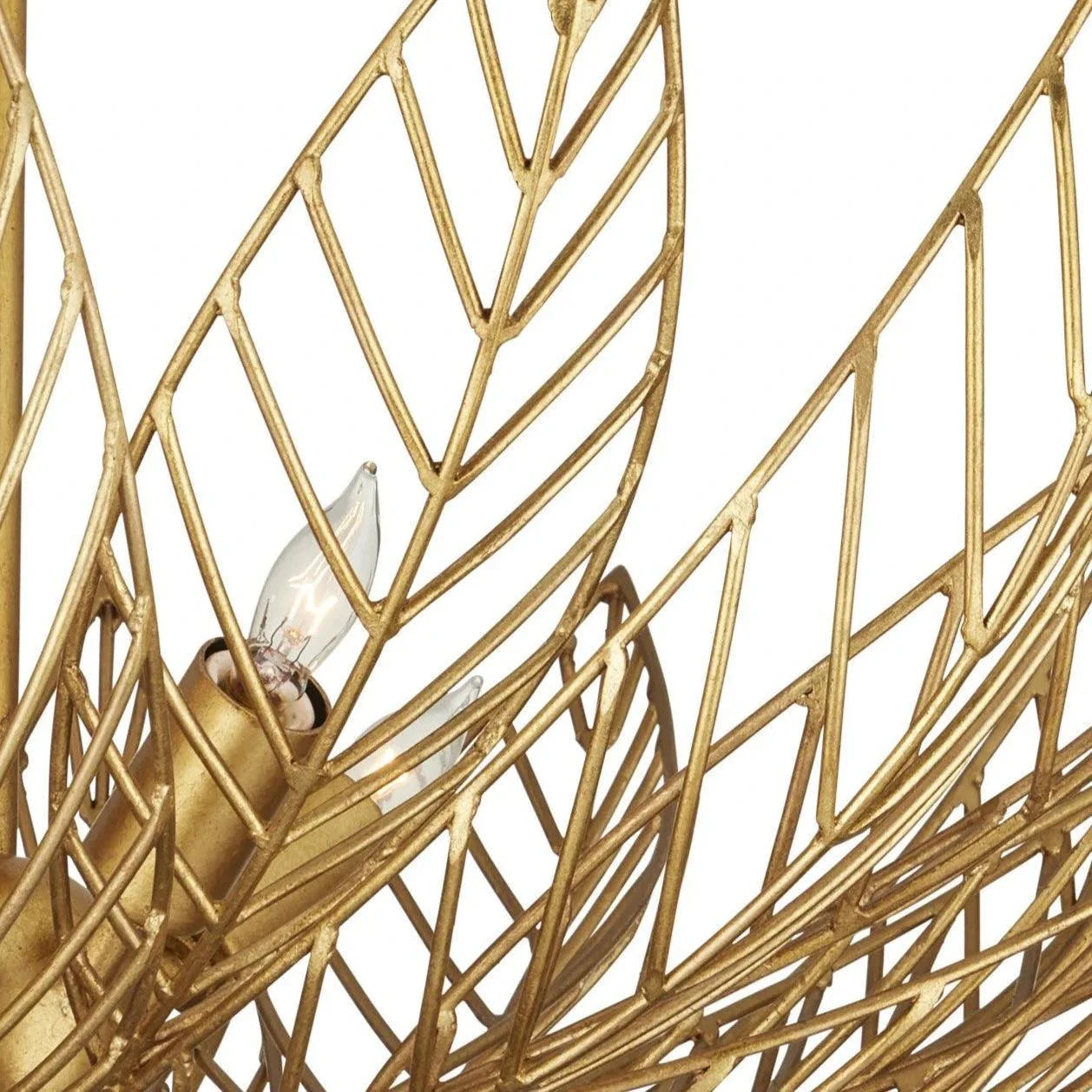 La lampada da semi-incasso Golden Leaflace presenta delicate foglie che scendono a cascata da un ingranaggio centrale per circondare elegantemente la sorgente luminosa. Realizzata con sottili nervature in ferro battuto con una moderna finitura in foglia d'oro, la struttura in metallo è meticolosamente saldata per creare ogni forma unica. Le moderne finiture dorate e la montatura aggiungono brillantezza a questa luminosa composizione, anche a luci spente.