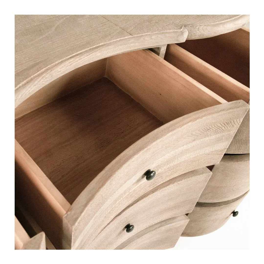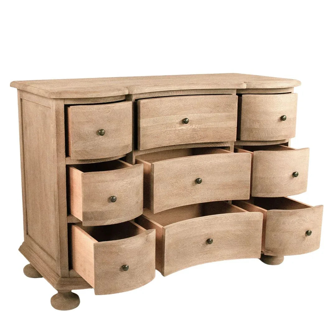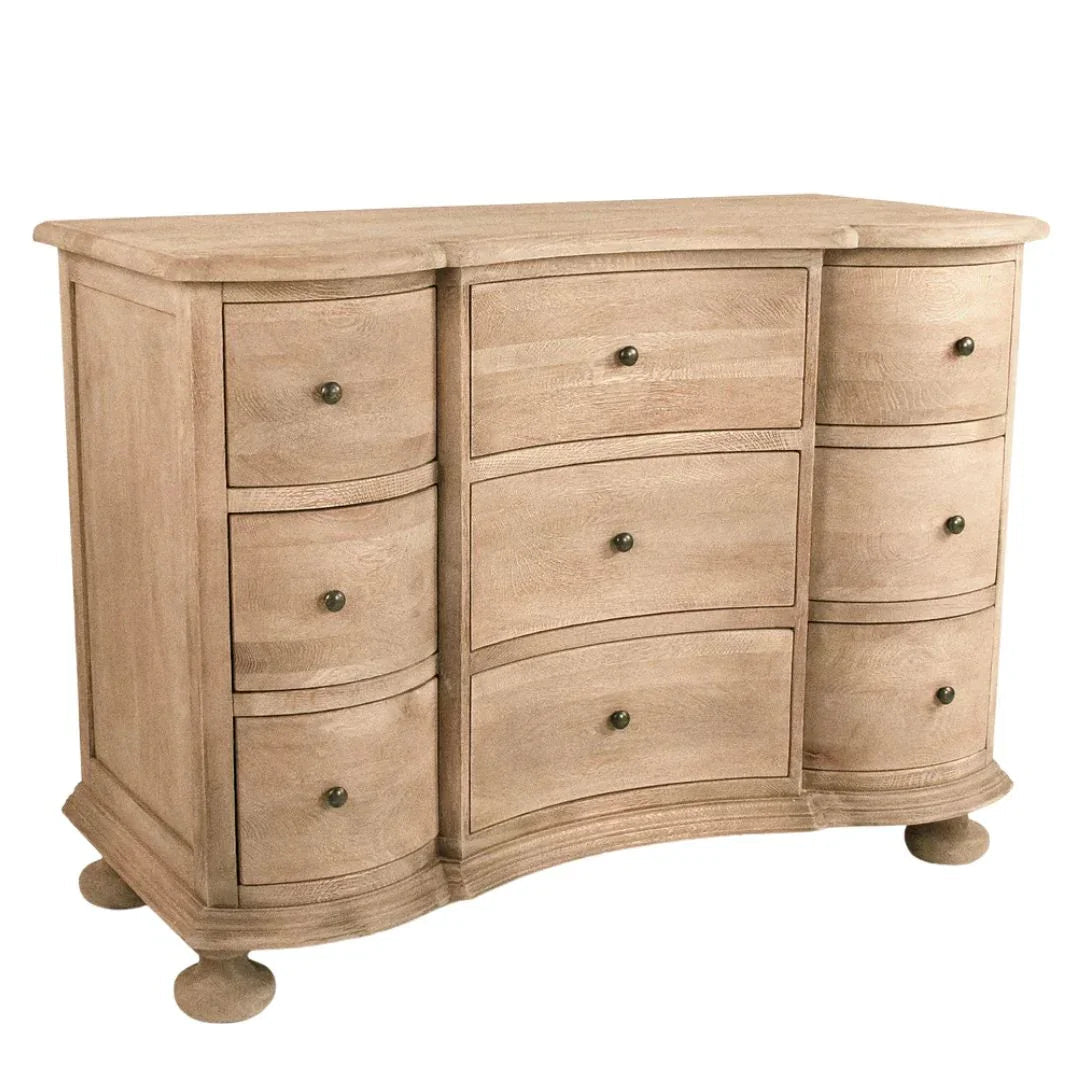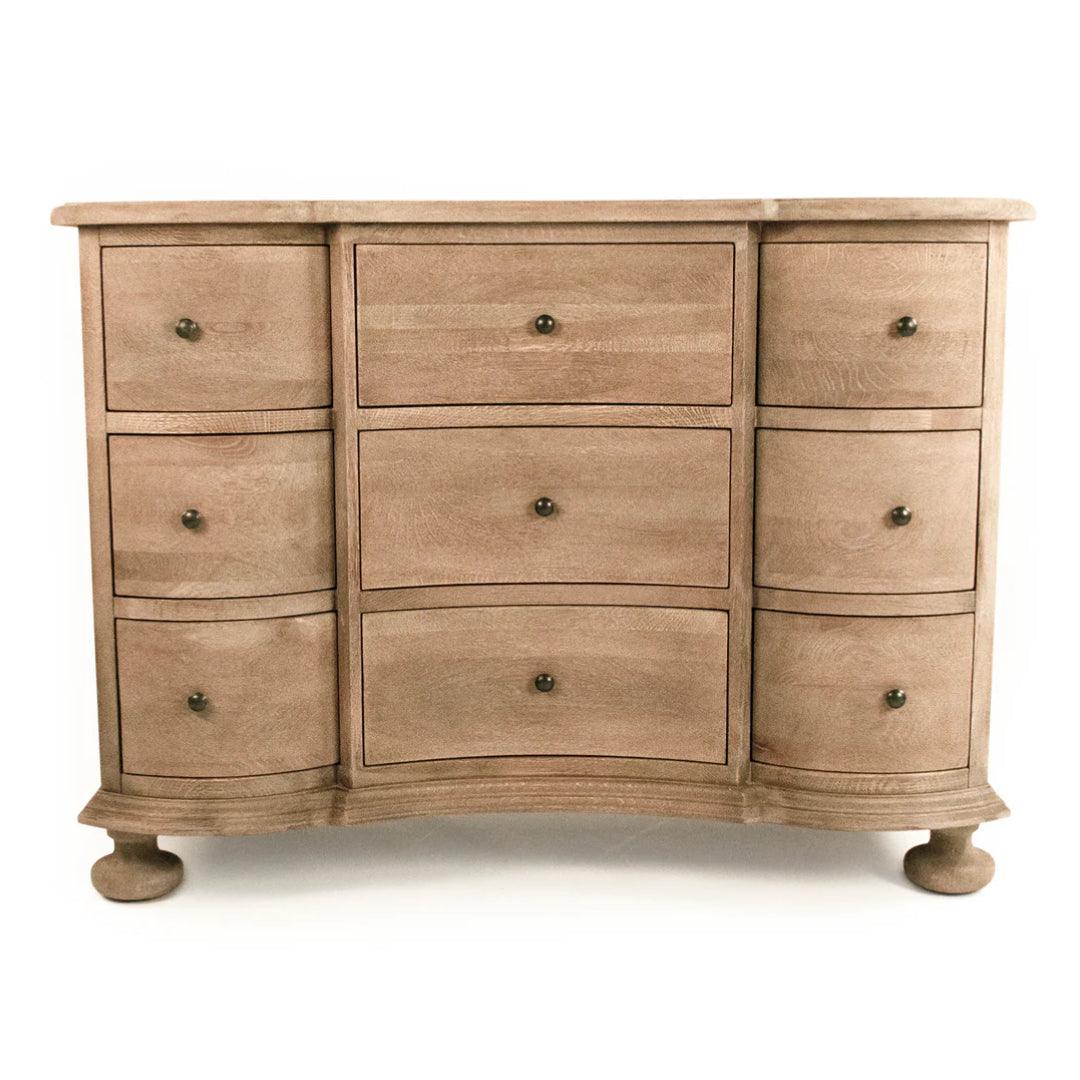 Questa splendida cassettiera in rovere naturale francese, realizzata in rovere chiaro, starà benissimo nella vostra camera da letto. È robusta e ha un bellissimo effetto legno naturale. Ha nove ampi cassetti per un'ampia capienza. Il design è elegante e richiama il classico stile francese, aggiungendo fascino e praticità alla vostra camera da letto o al vostro soggiorno.