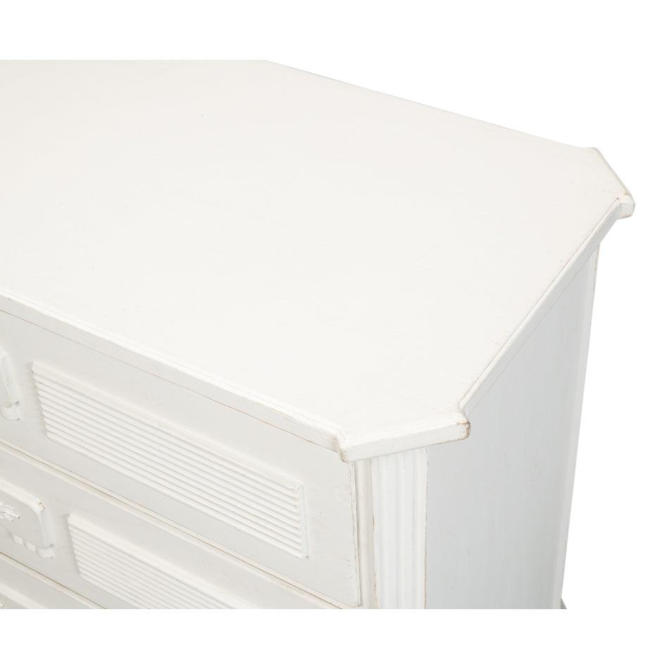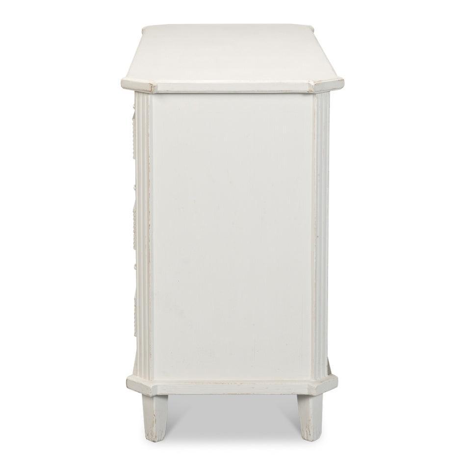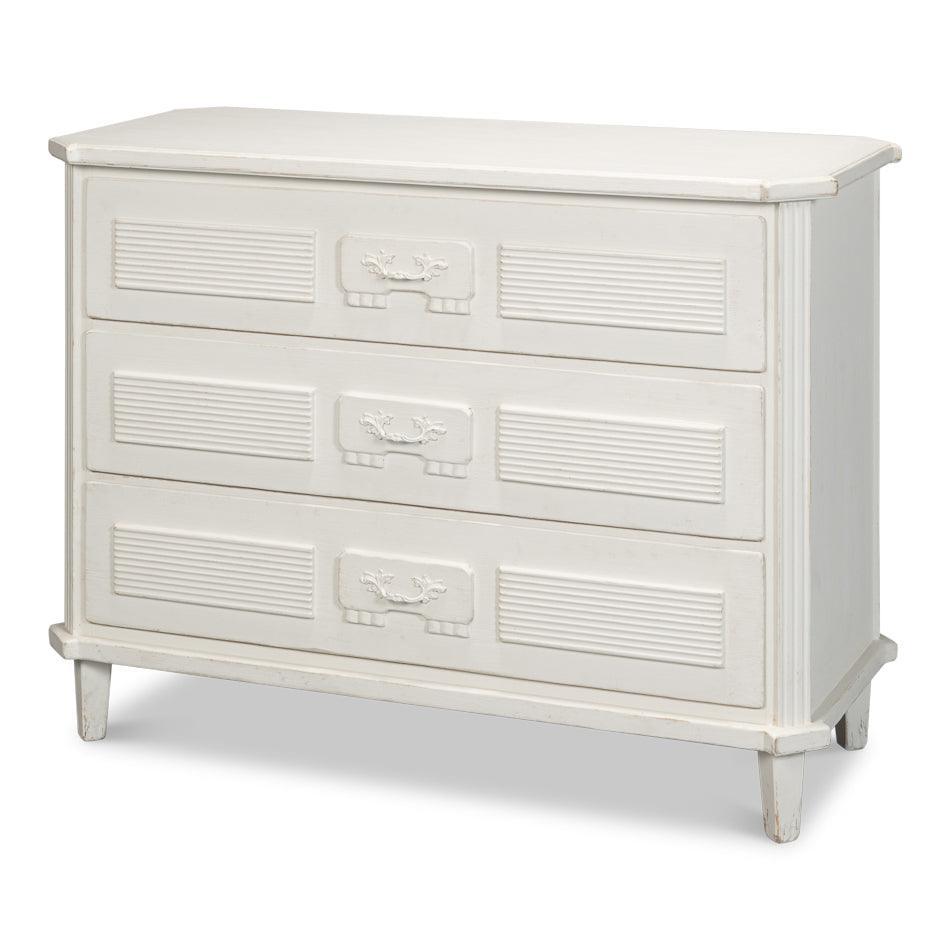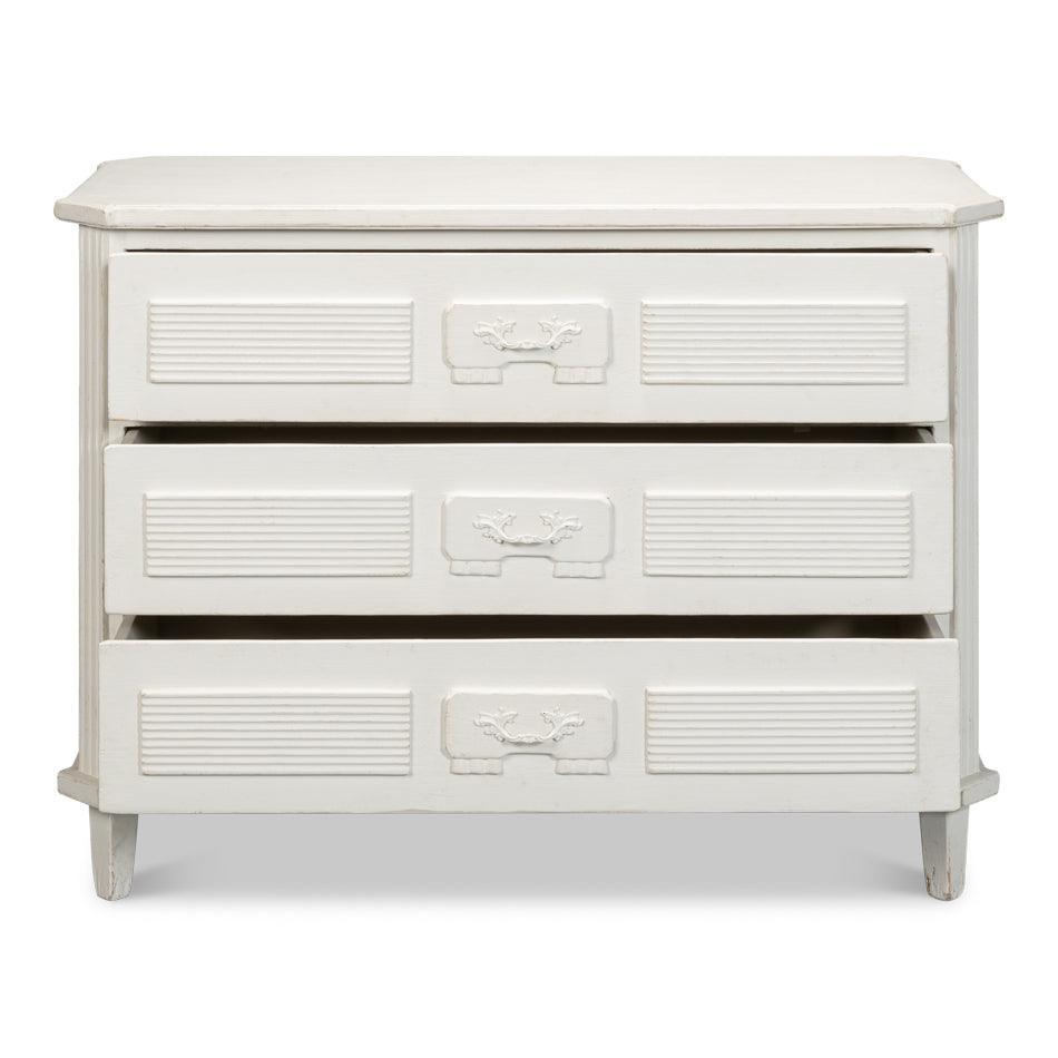 La cassettiera rustica in stile rustico, nera e anticata, vanta dettagli magistrali in bella mostra nella sua struttura in pino di recupero. Una finitura nera anticata esalta ogni intaglio e venatura, mentre i 3 cassetti offrono ampio spazio nascosto. Questa cassettiera in stile rustico è ideale per una camera da letto o un ingresso.