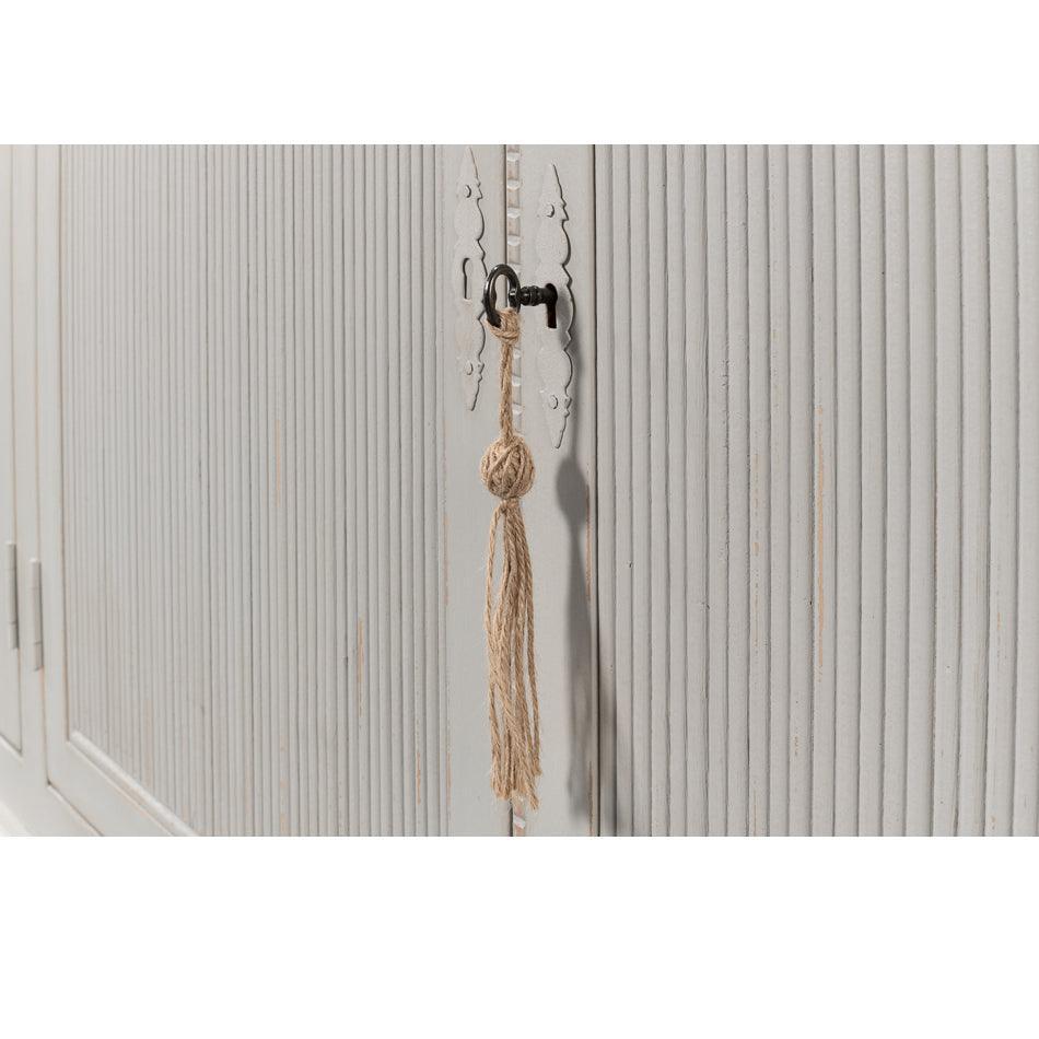 La credenza Harper in grigio chiaro, con le sue dimensioni imponenti e l'ampio spazio a disposizione, sarà la protagonista di ogni stanza. Caratterizzata da delicate tonalità di grigio, ante con frontali scanalati e serrature funzionanti, questa credenza si adatta perfettamente all'armonia di qualsiasi ambiente. Realizzata in legno massello e assemblata con tecniche artigianali tradizionali, questa credenza è un pezzo forte attorno al quale costruire una casa.