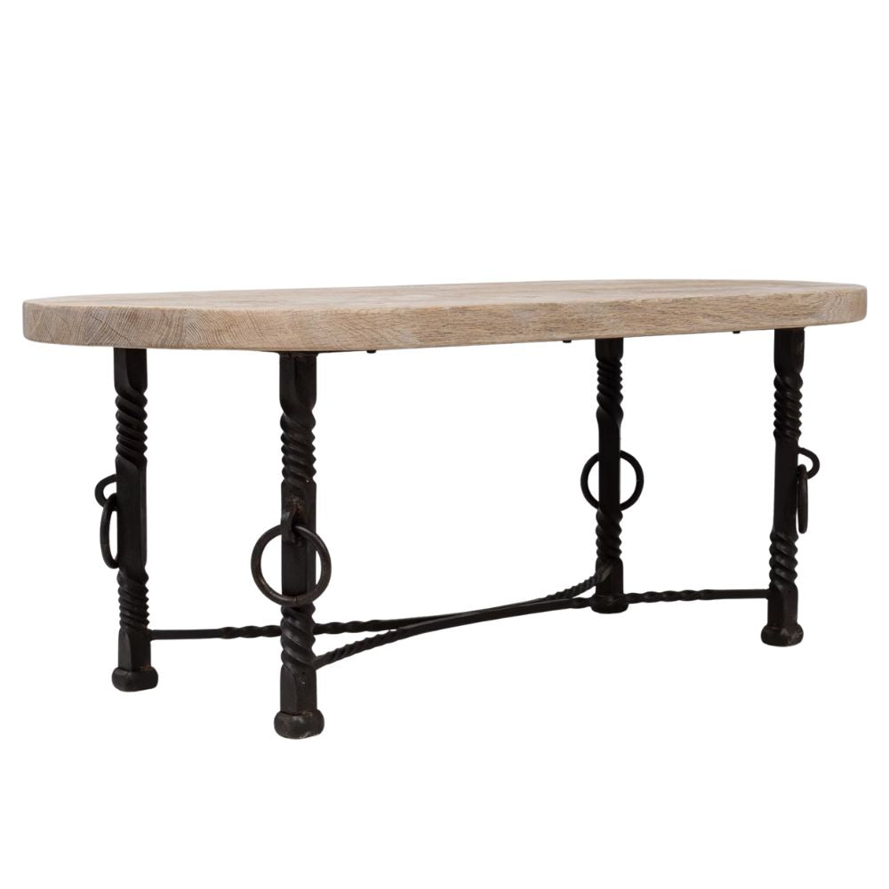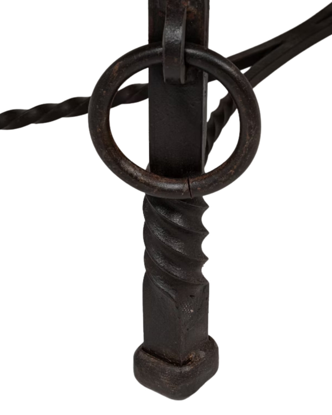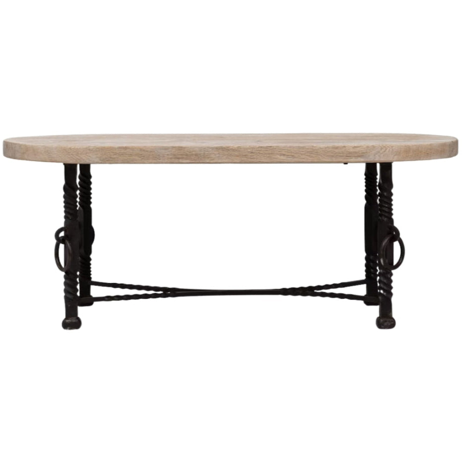 Questo tavolino rustico con base in ferro abbina un piano liscio in legno naturale a una robusta base in ferro battuto con dettagli intrecciati.Il suo design senza tempo fonde forza ed eleganza, rendendolo un elemento centrale versatile che aggiunge calore e carattere a qualsiasi soggiorno o salotto.