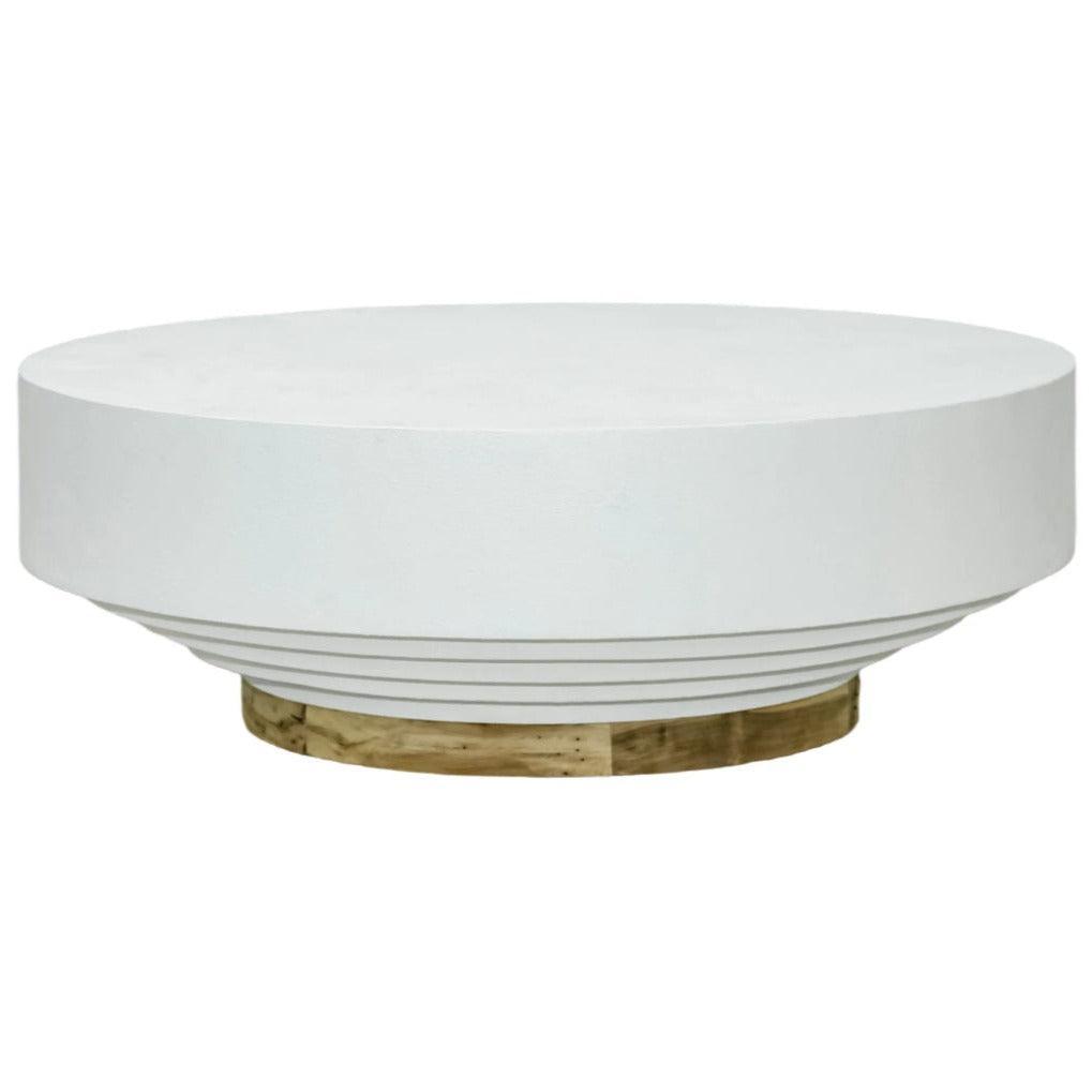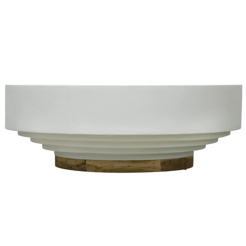 Il tavolino da caffè rotondo da esterno White Tambor presenta un piano in resina fusa con un effetto realistico simile alla pietra, abbinato a una robusta base in legno di teak di recupero. Rifinito in un bianco brillante, è leggero, impermeabile e resistente, ideale per aggiungere stile e funzionalità a qualsiasi ambiente esterno.