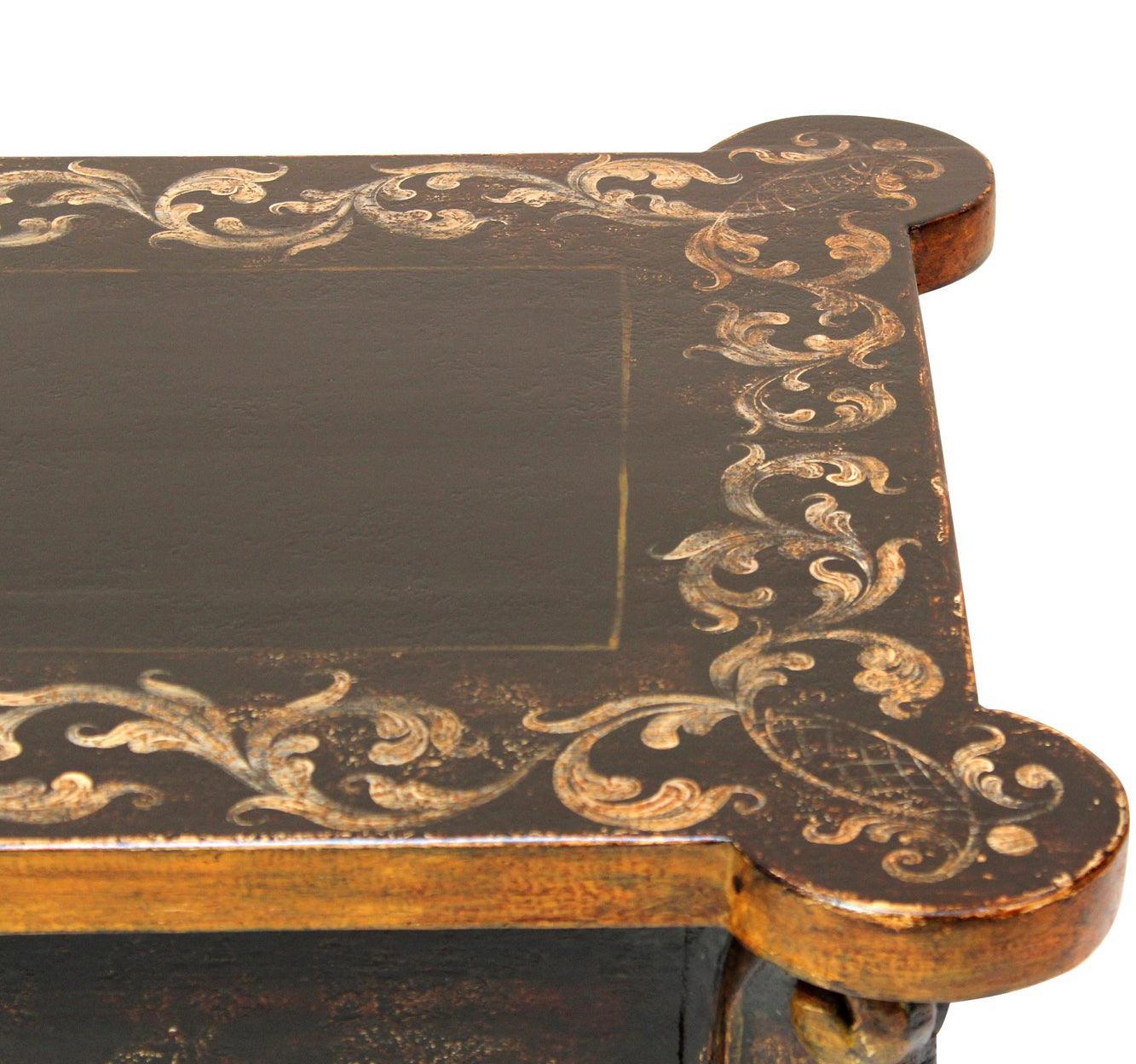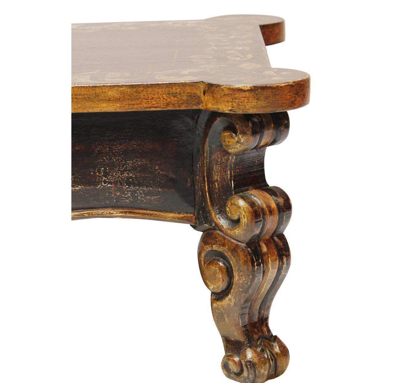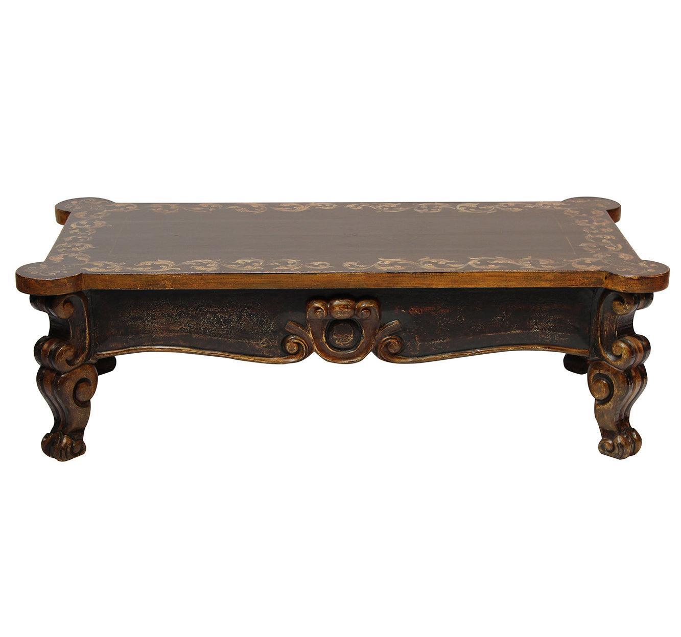 Il tavolino da caffè Toulouse French Country è realizzato in legno massello con una ricca finitura espresso craquelé. Caratterizzato da intricati dettagli intagliati ed eleganti volute color crema e oro, dona un tocco di lusso e raffinatezza senza tempo a qualsiasi ambiente. Un vero esempio di raffinata artigianalità e stile classico.