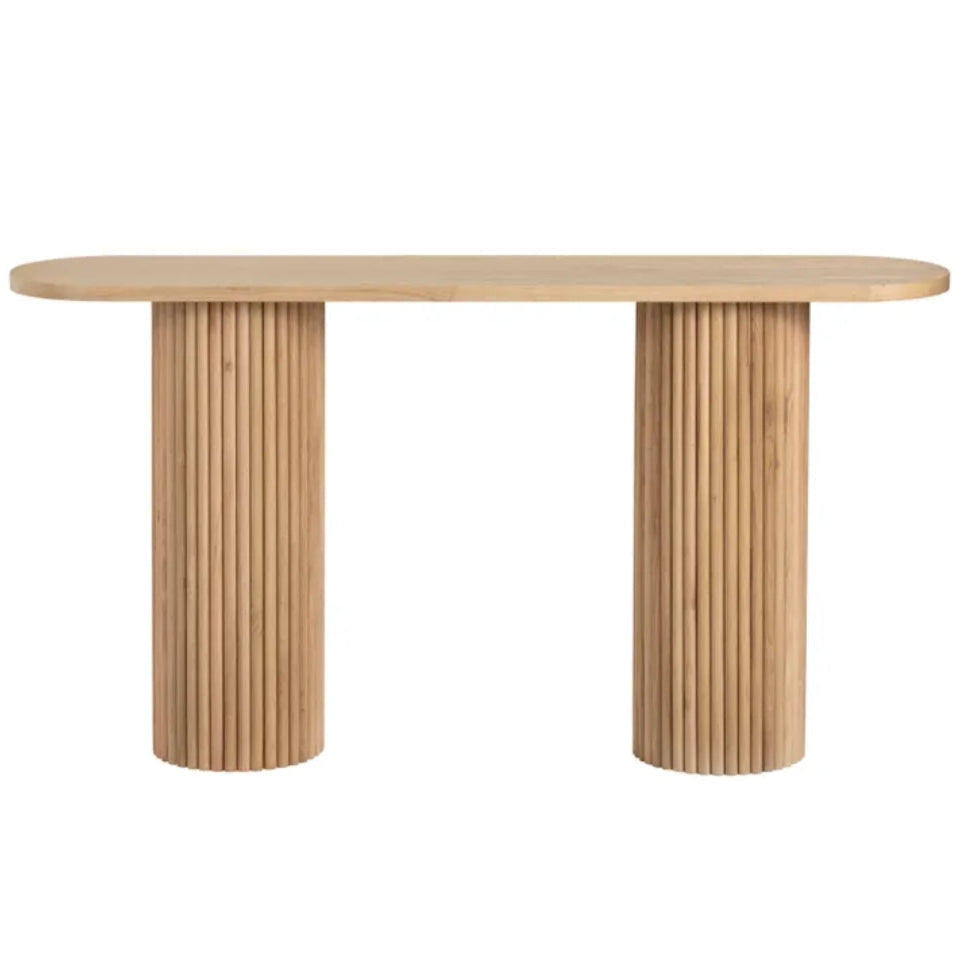 Un mix di stile moderno e calore naturale, questa consolle in legno con piedistallo scanalato in stile transitorio presenta un elegante piano in legno sostenuto da basi con piedistallo scanalato. La sua finitura chiara aggiunge un tocco arioso, mentre il design versatile la rende perfetta per un ingresso, un corridoio o dietro un divano. Un pezzo semplice ma d'effetto che si adatta a qualsiasi arredamento.