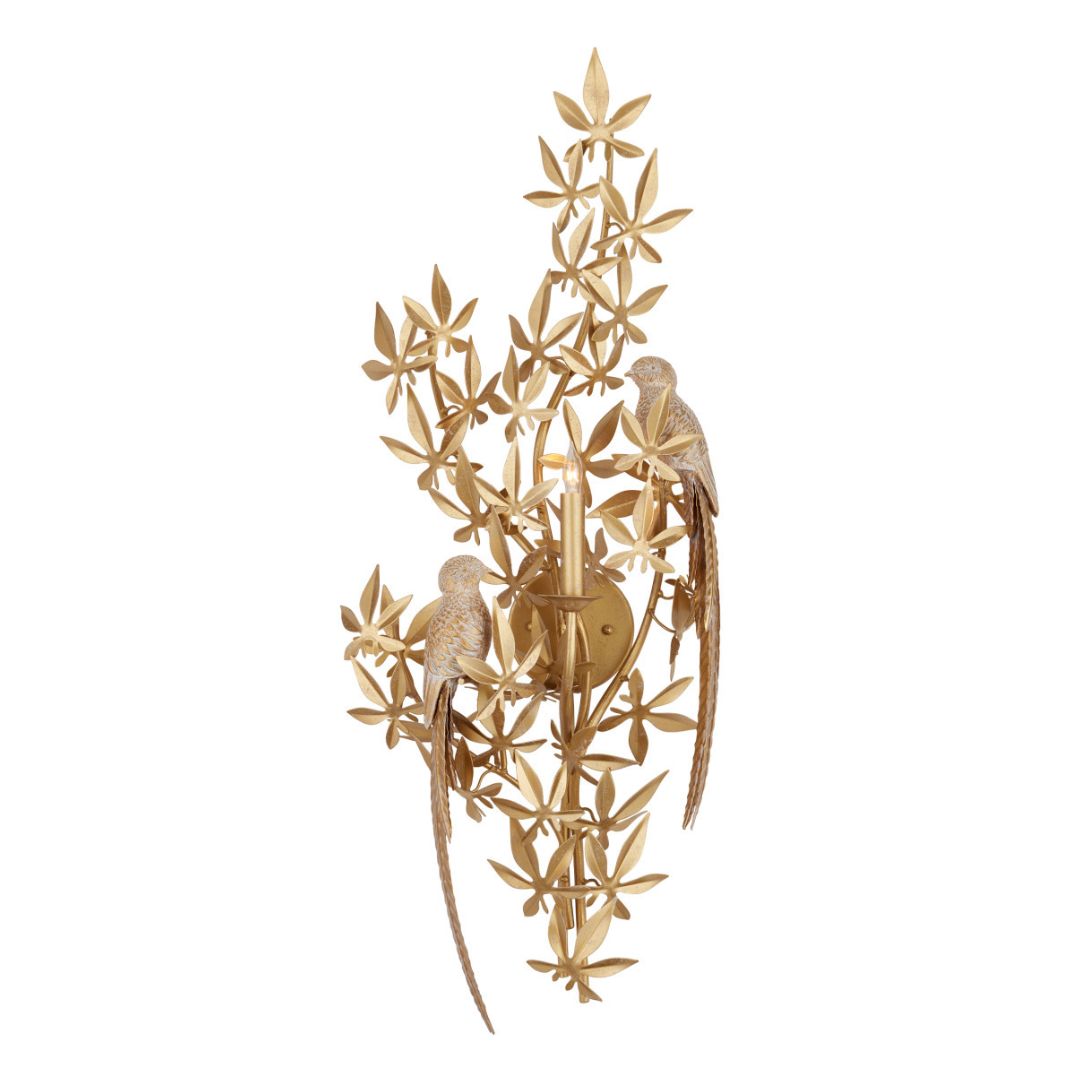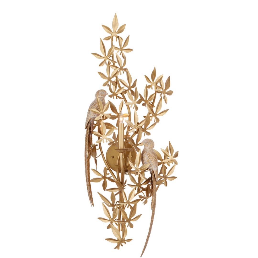 L'applique "Swedish Gold Perched Birds" presenta graziosi dettagli di foglie e fiori, impreziositi da uccelli appollaiati, il tutto rifinito in un ricco oro svedese. Traendo ispirazione dall'artigianato antico e dagli originali scolpiti a mano, ogni pezzo è accuratamente riprodotto utilizzando materiali compositi. Una lampadina dimmerabile fornisce una luce morbida ed elegante. Disponibile nelle configurazioni sinistra, destra o entrambe per completare perfettamente il tuo arredamento.