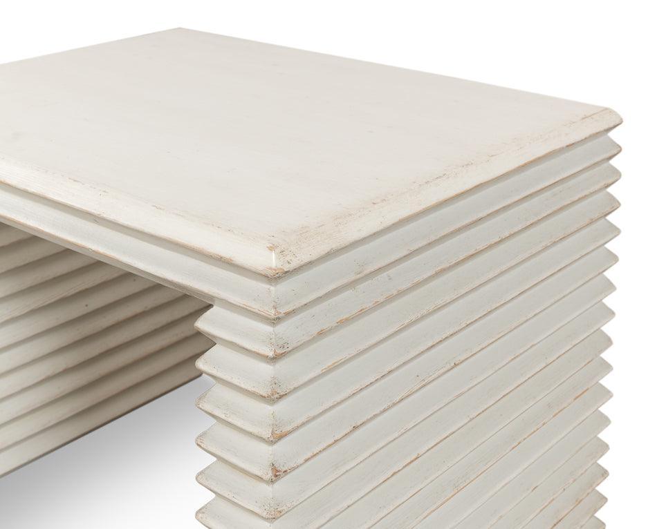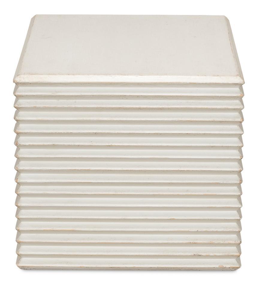 Il tavolino d'accento bianco anticato con finitura a coste dona stile e personalità al tuo spazio. Questo tavolino d'accento in pino presenta una texture a coste sui lati per un effetto accatastato. La finitura bianco anticato impreziosisce questo pezzo glamour contemporaneo, conferendogli al contempo una presenza neutra e disinvolta. Apprezzerai la versatilità di questo tavolo: è perfetto per qualsiasi stanza della tua casa.