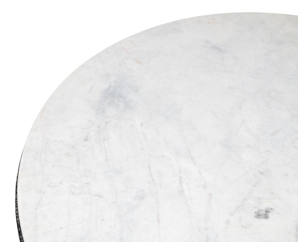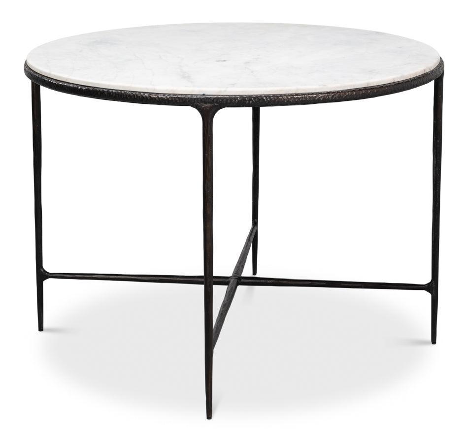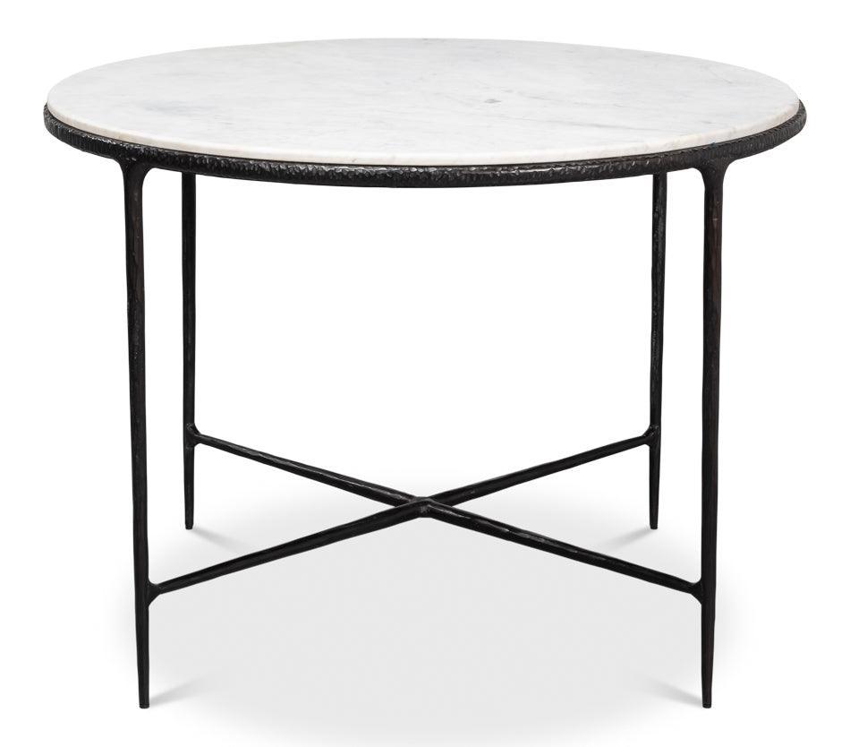 Regala alla tua sala da pranzo un tocco di lusso con questo sofisticato tavolo da colazione in ferro battuto con piano in marmo. L'elegante abbinamento tra il piano in marmo bianco e la base in ferro battuto nero crea un look moderno e di transizione unico. Con un'ampia forma rotonda da 42 pollici e linee eleganti, questo pezzo senza tempo dona eleganza e raffinatezza alla tua casa.