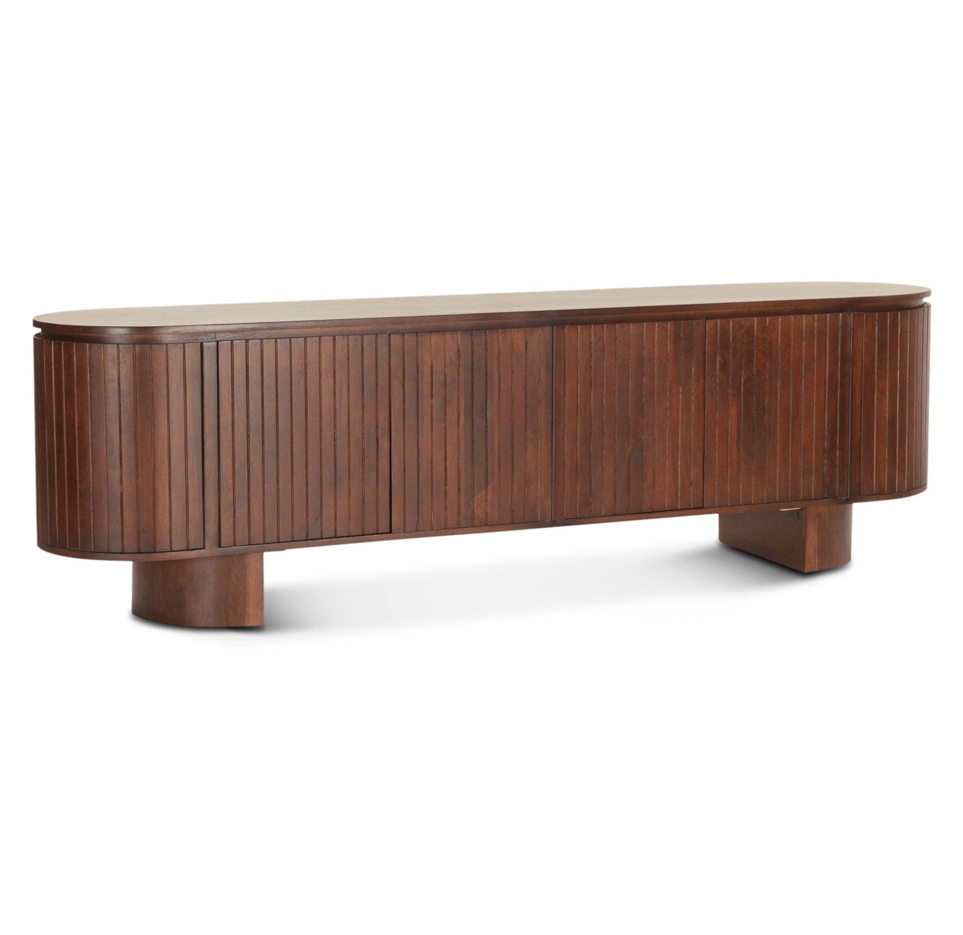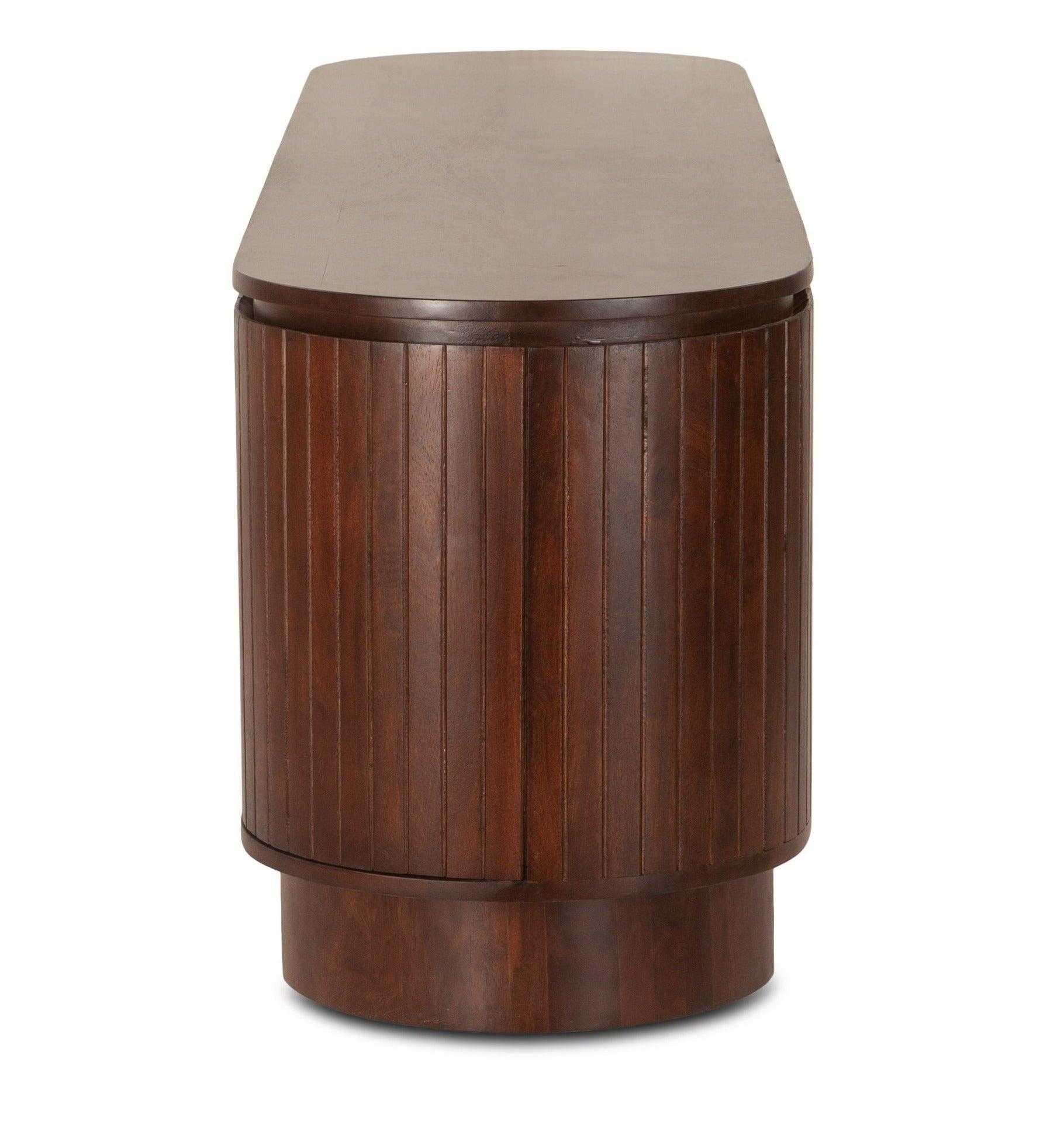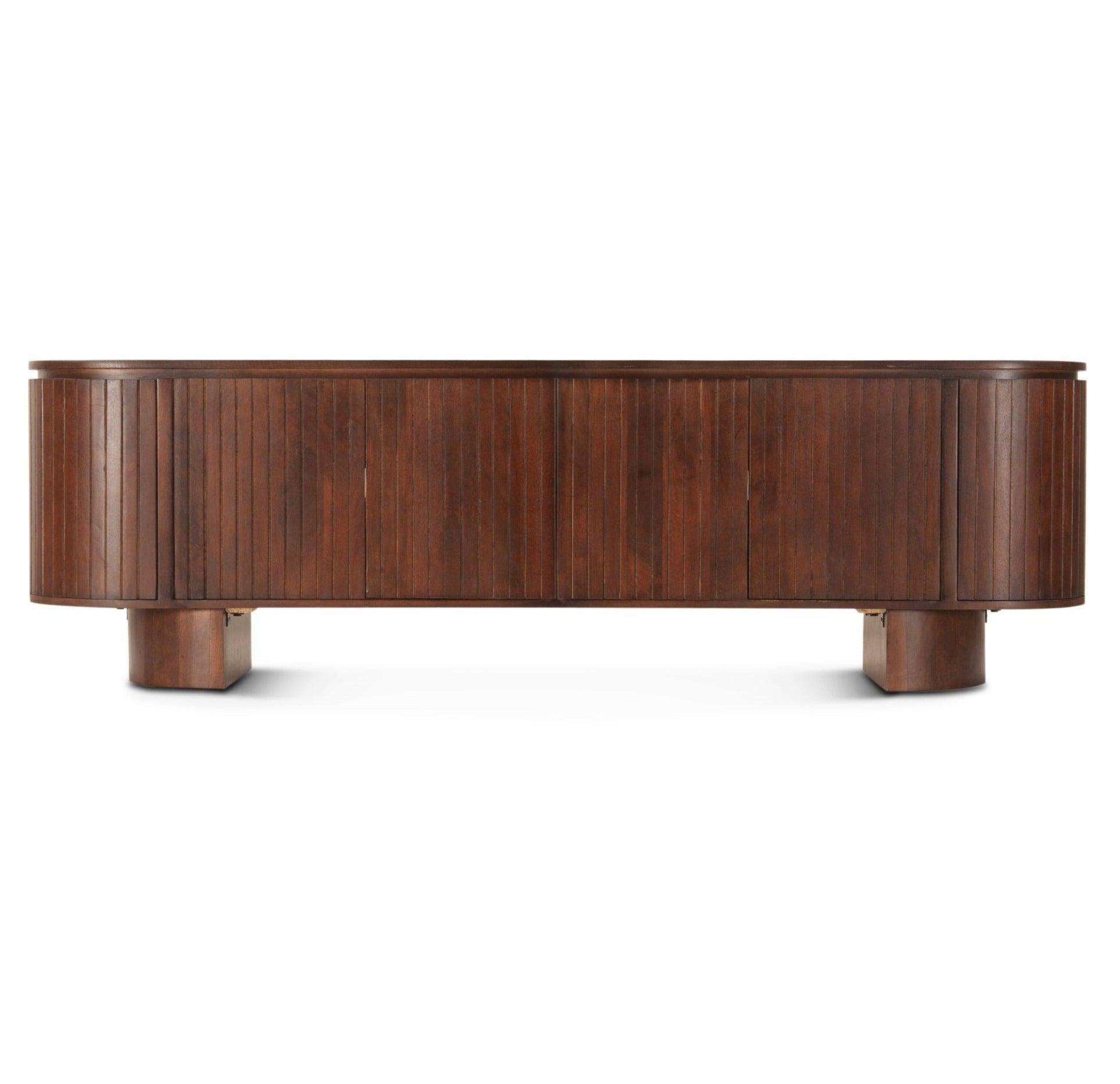Il mobiletto multimediale moderno in legno di mango è dotato di quattro vani portaoggetti interni con ripiani che conferiscono un tocco unico di eleganza e funzionalità. Il suo design semplice ma sofisticato gli permette di integrarsi perfettamente con qualsiasi stile d'arredo, rendendolo un pezzo versatile che può essere facilmente integrato in qualsiasi ambiente. Realizzato in legno massello di mango, questo mobiletto multimediale presenta una splendida venatura naturale e la sua ricca finitura in mogano invecchiato completa il design generale.