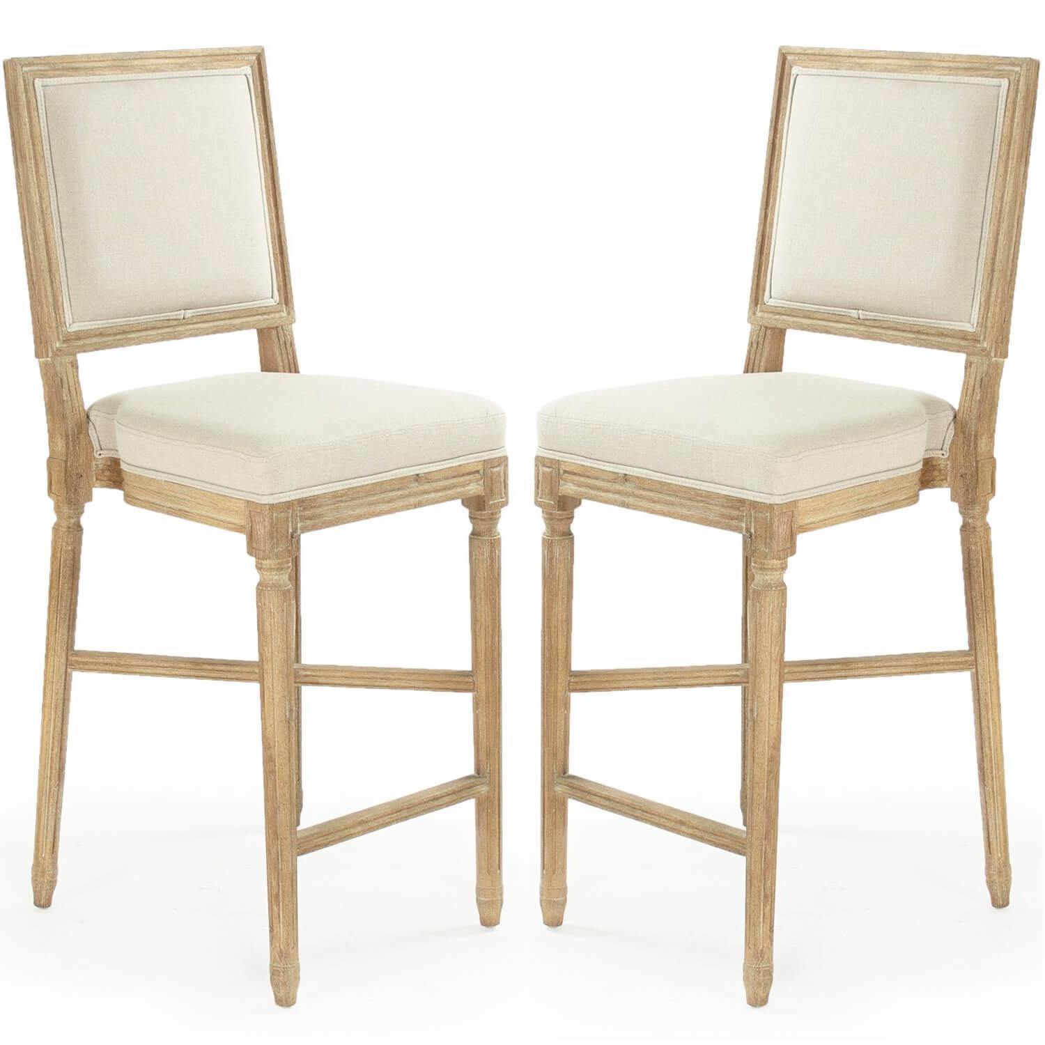 Il set di due sgabelli da bar Louis sarà l'accessorio perfetto per qualsiasi angolo bar di casa. Il rivestimento in lino naturale vi permetterà di riposare comodamente sulle sedute imbottite in schiuma, mentre la finitura in rovere grigio sbiancato ne garantisce la bellezza e si adatterà perfettamente a qualsiasi ambiente bar abbiate in casa. Gli sgabelli da bar Louis sono realizzati per essere robusti e resistenti, grazie alle loro quattro lunghe gambe di supporto.
