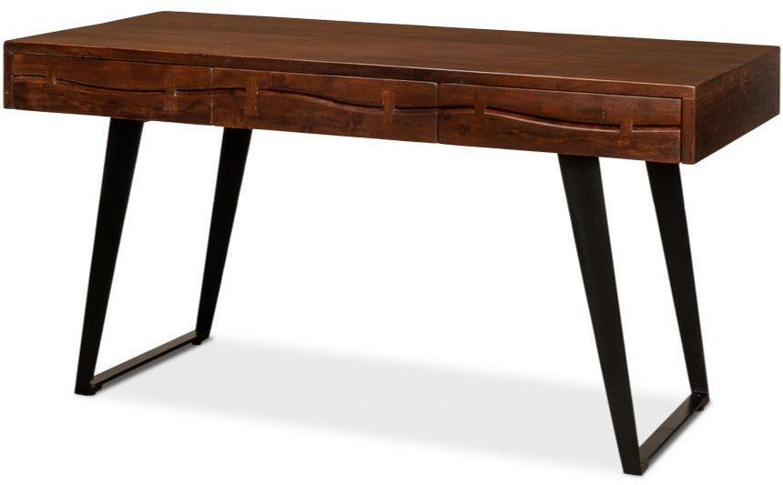 Scrivania industriale in acacia marrone e ferro