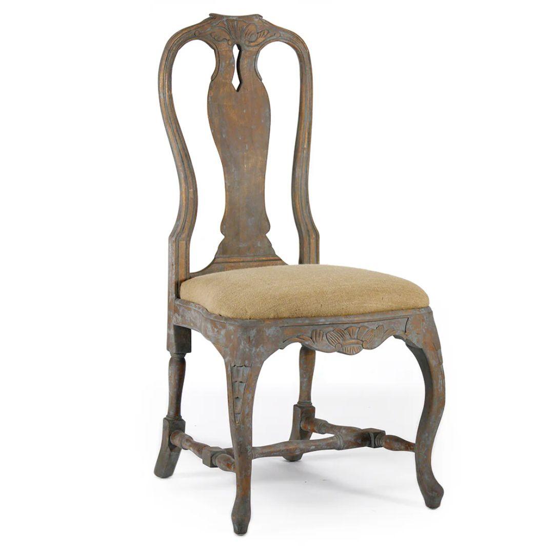 Arricchisci la tua sala da pranzo con il fascino dello stile antico, grazie a questa sedia da pranzo in stile provenzale anticato. La sua autentica finitura blu-grigio, fortemente anticata, emana un'eleganza anticata, mentre il raffinato cuscino in juta beige completa il design classico. Abbinala a un tavolo da pranzo rustico francese per un tocco davvero sofisticato.