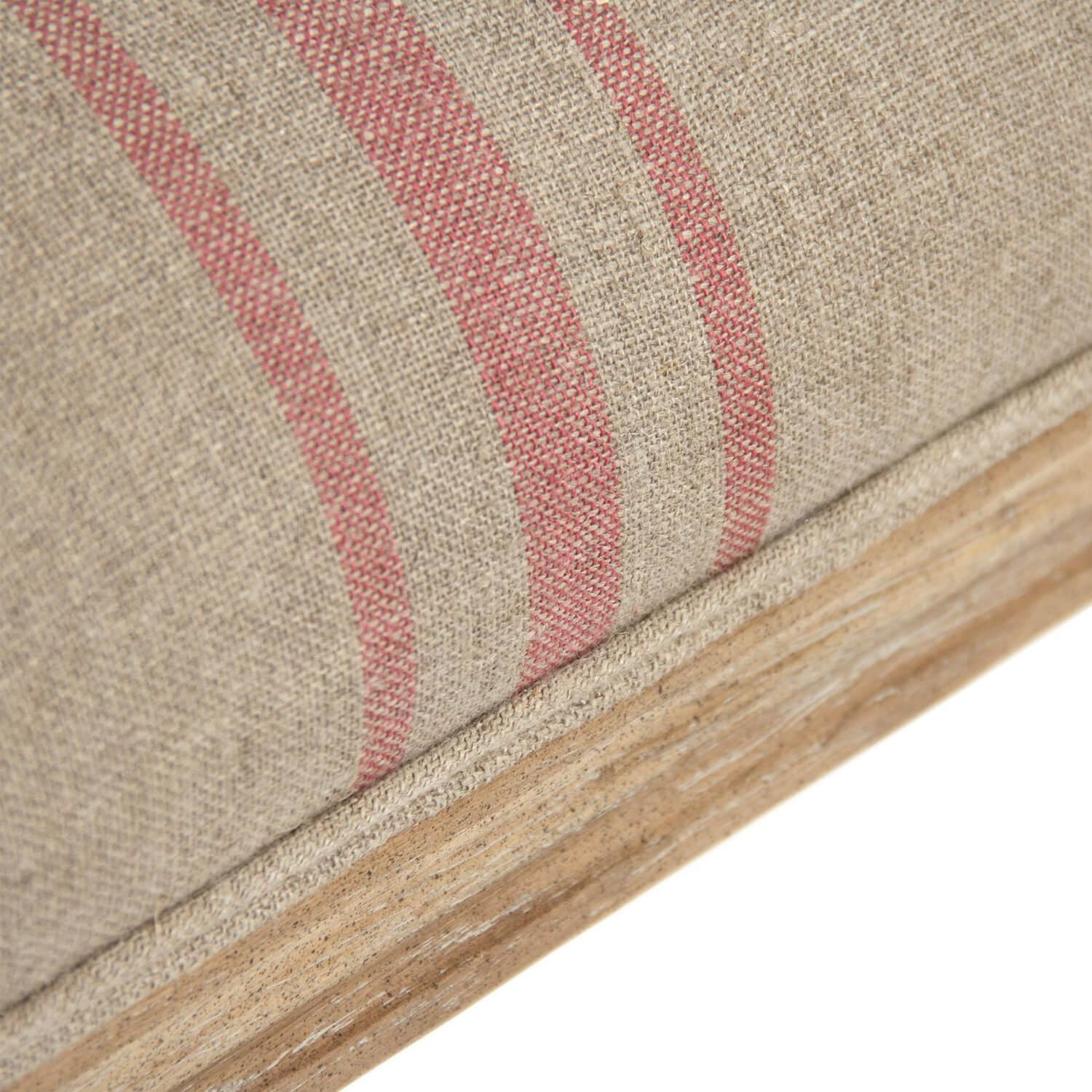 • Sedia imbottita in stile country francese • Rivestimento in lino color cachi inglese neutro con striscia rossa • Telaio in rovere grigio sbiancato
