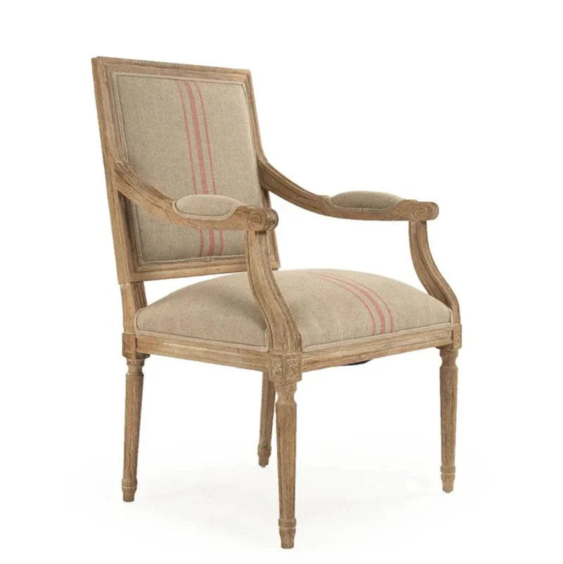 Che sia per cenare o per un uso occasionale, apprezzerete la sedia da pranzo French Louis a righe rosse per la sua combinazione di comfort e appeal estetico. Rivestita in English Khaki con un semplice motivo a righe rosse, questa sedia presenta uno schienale squadrato e una struttura in rovere grigio sbiancato finemente intagliata. I braccioli imbottiti ne esaltano l'atmosfera accogliente, fornendo il tocco finale perfetto.