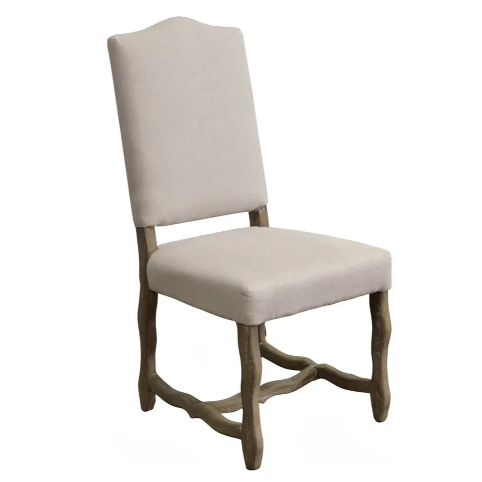 Questa sedia da pranzo in stile country francese Camelback fonde una raffinatezza senza tempo con il comfort moderno. Caratterizzata da uno schienale elegantemente curvo, un lussuoso rivestimento in lino e gambe in rovere dalle linee sinuose, offre stile e resistenza. Le sue tonalità neutre si adattano a diversi interni, rendendola perfetta per eleganti sale da pranzo.