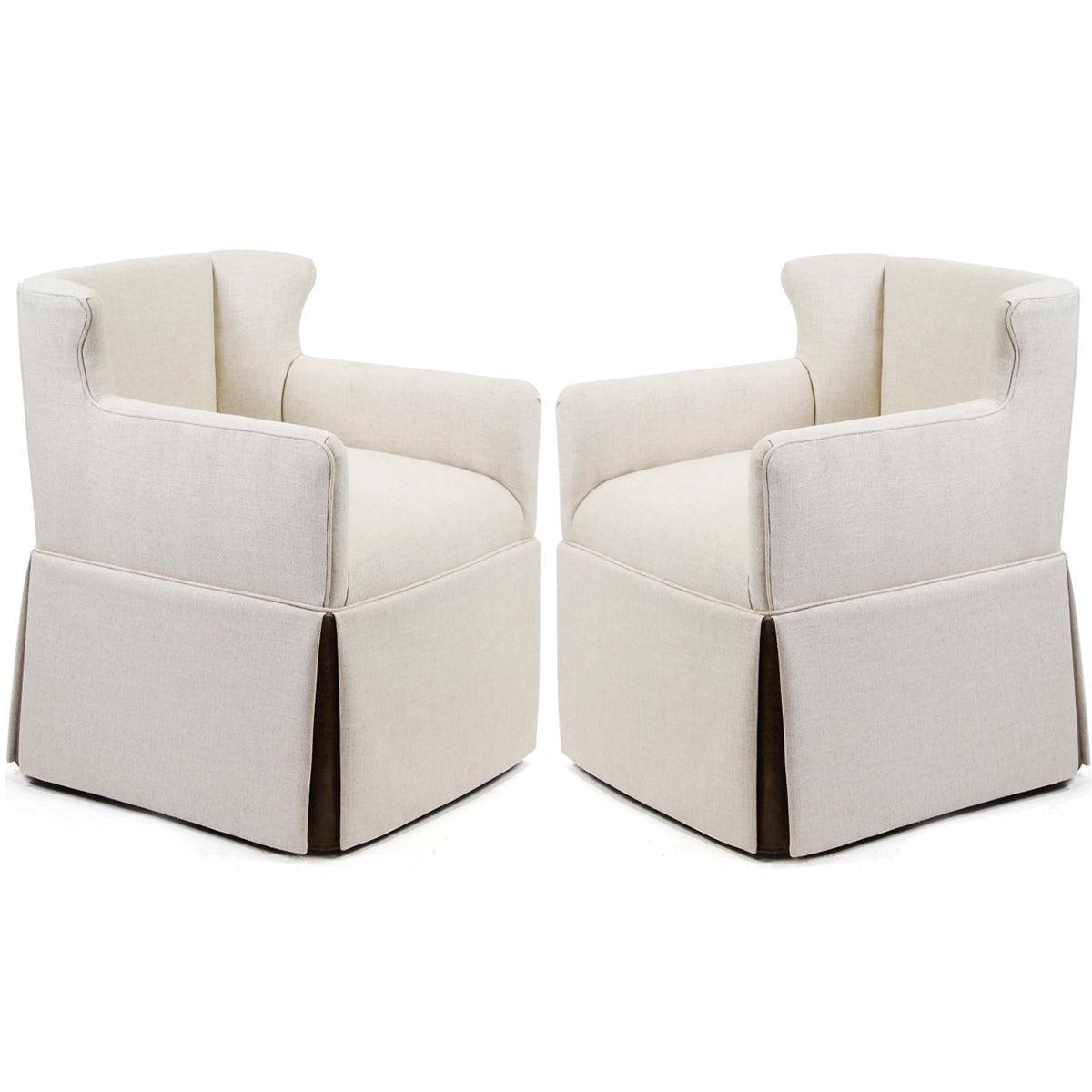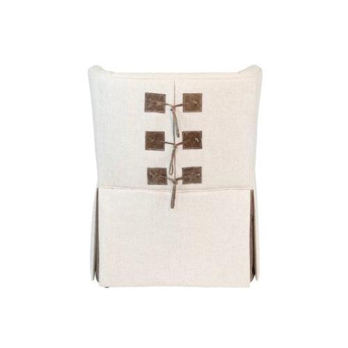 La sedia da pranzo Madeleine con schienale basso e gonna offre una seduta ultra confortevole attorno al tavolo da pranzo o come sedia d'accento per qualsiasi stanza. I lacci in pelle sullo schienale conferiscono a queste sedie un aspetto più sofisticato. Lo schienale a ali aggiunge un tocco di stile al design, mentre i braccioli le rendono particolarmente comode per lunghe cene con gli amici.
