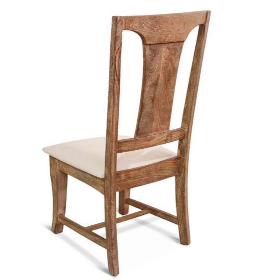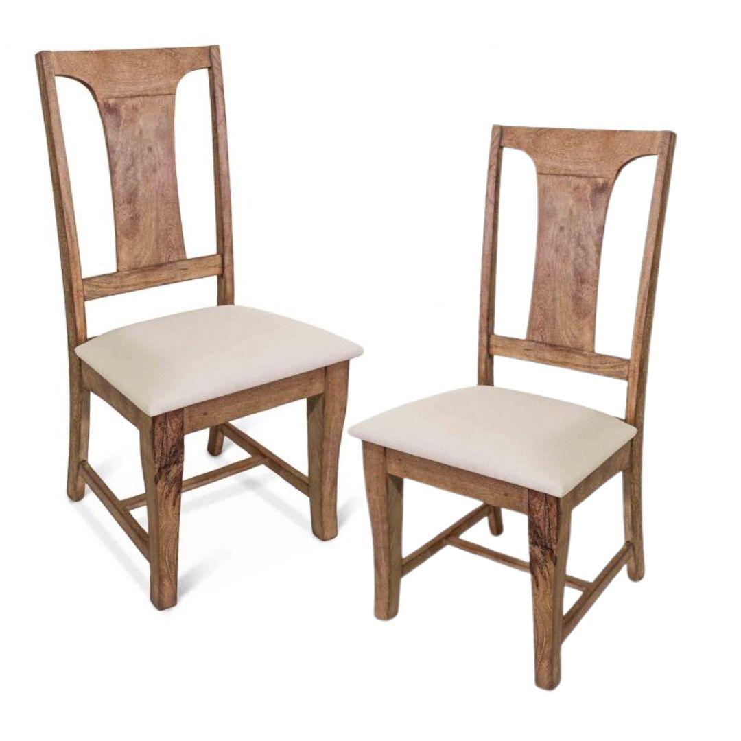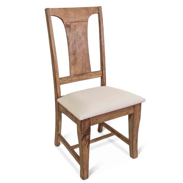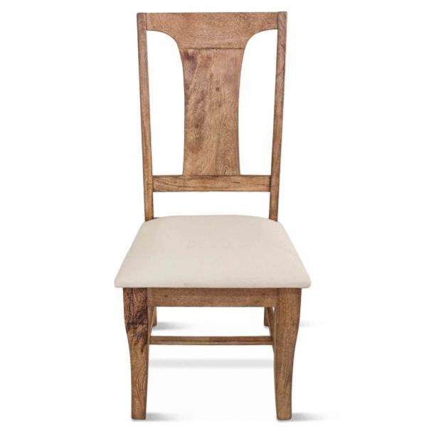 • Sedia laterale standard realizzata in legno massello di mango con seduta imbottita color crema e misto lino.