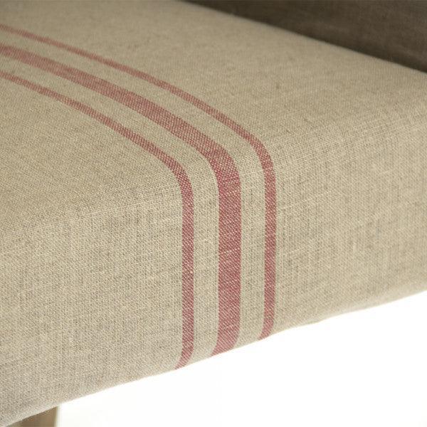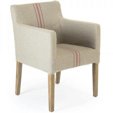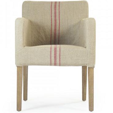 La poltrona Avignon a righe rosse è realizzata in rovere grigio sbiancato con gambe e braccioli dritti per un look tradizionale. Il rivestimento in tessuto color cachi inglese presenta una finitura naturale e disinvolta con una striscia rossa per un tocco di stile. Questa sedia è perfetta per una sala da pranzo o un soggiorno con il suo stile shabby chic.