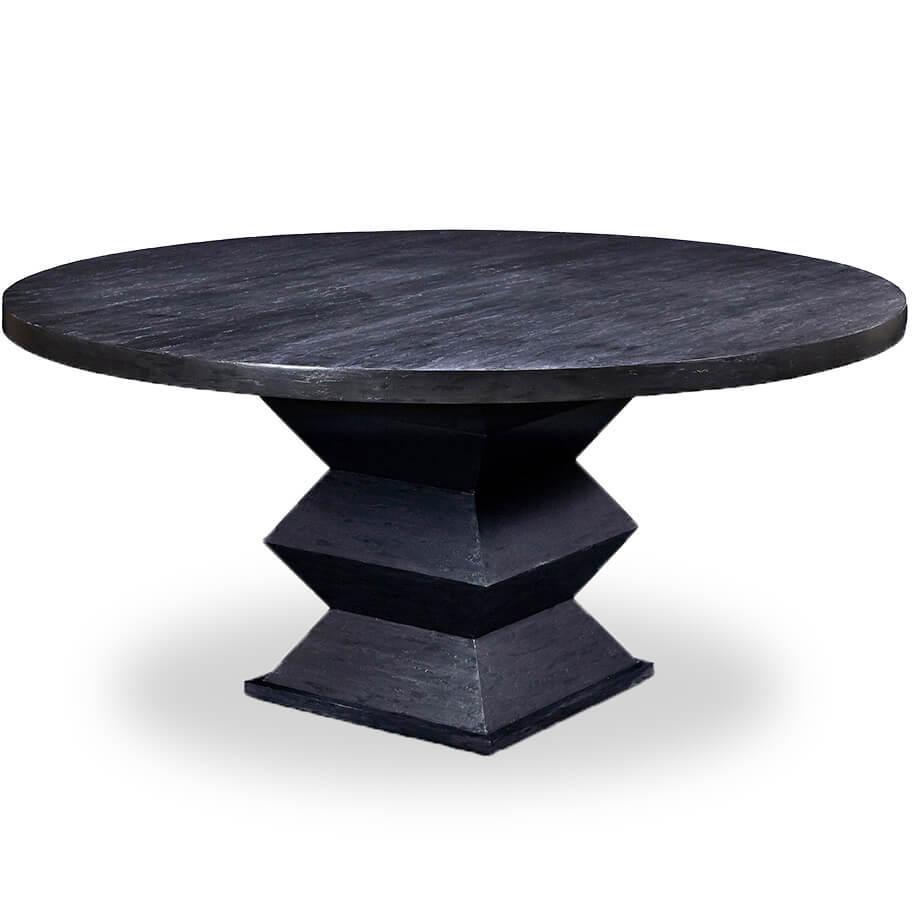 Il tavolo da pranzo Aztec Black ha un'imponente base a piedistallo con un design a fisarmonica squadrato. La finitura nero anticato mette in risalto le complessità della struttura in rovere, per un'estetica moderna e alla moda. Questo tavolo darà un tocco di brio alla vostra zona colazione o alla vostra cucina, e ospiterà numerosi pasti e conversazioni.