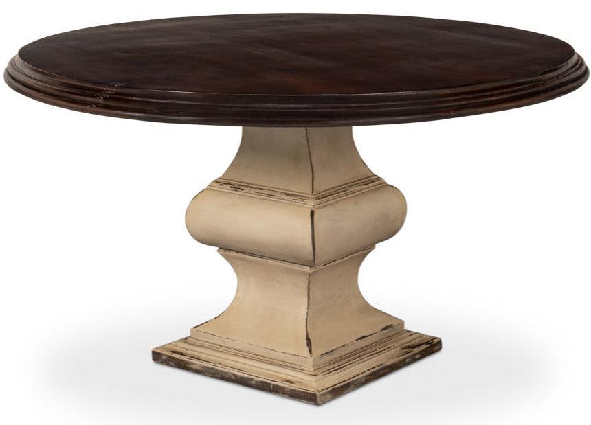 Il tavolo da pranzo con piedistallo color crema francese è sostenuto da una solida base architettonica in una tonalità neutra e completato da un generoso piano da 54 piedi in una tonalità terra coordinata. Questo sostanzioso tavolo francese invita gli ospiti a soffermarsi attorno a pasti e conversazioni straordinari. Le calde tonalità terra di questo speciale tavolo da pranzo gli permettono di essere il protagonista di qualsiasi sala da pranzo o il complemento perfetto per uno spazio già ben arredato.