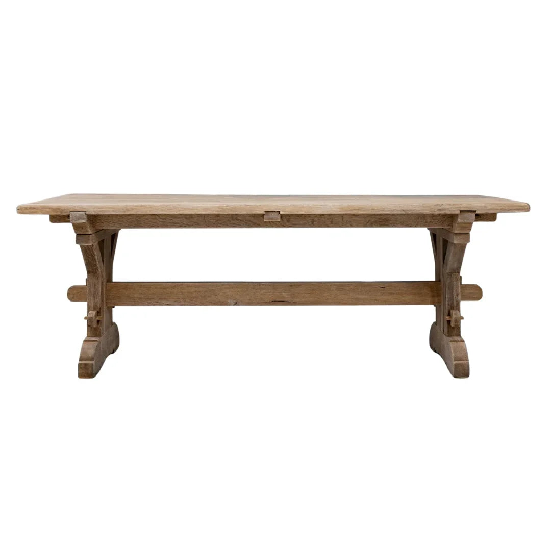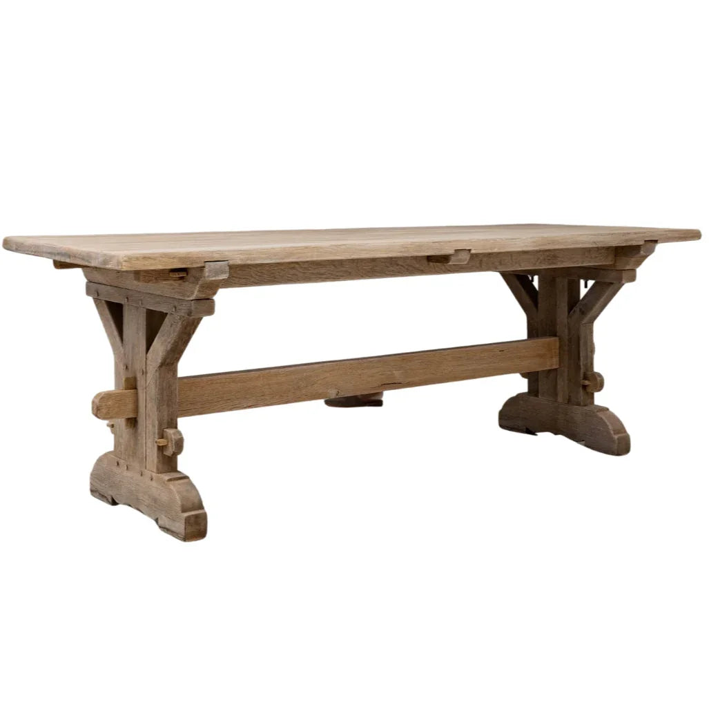 Realizzato in rovere massello, il tavolo a cavalletto in rovere "French Farmhouse" presenta una finitura naturale e una tradizionale giunzione a pioli. La sua robusta base a cavalletto e la traversa a pioli gli conferiscono un fascino rustico e un fascino senza tempo, perfetto per cene quotidiane, riunioni o come elemento di spicco in qualsiasi ambiente.