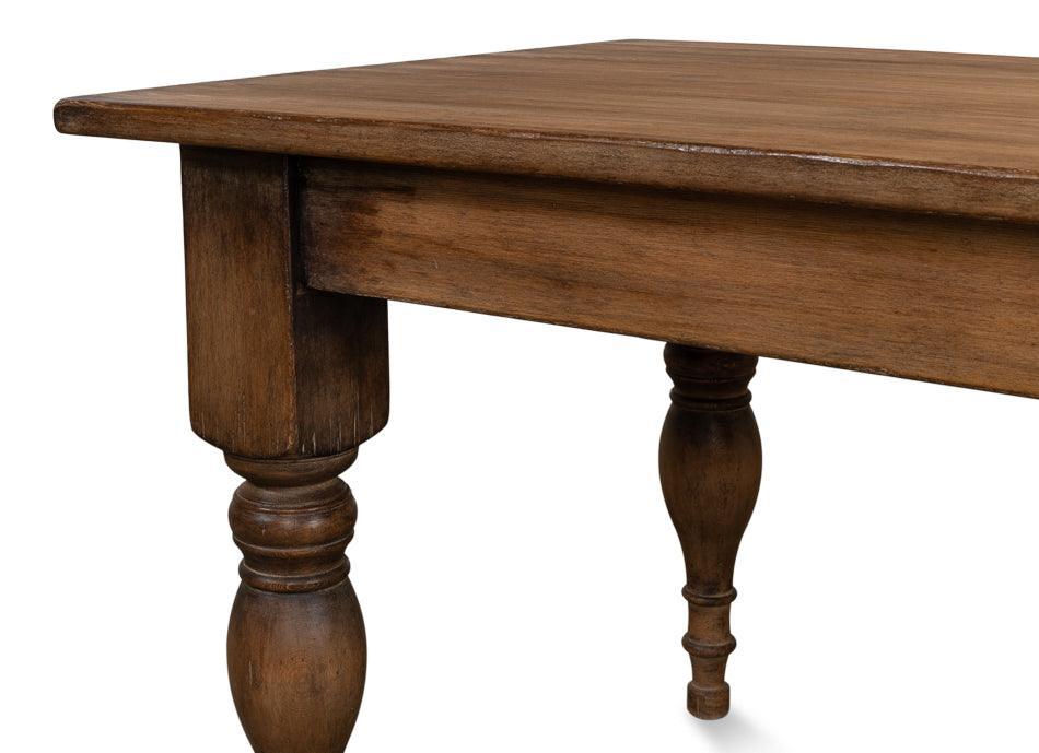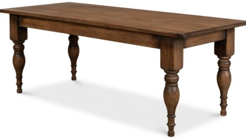Il tavolo da pranzo in stile rustico, in legno tinto, ha quattro gambe tornite a mano con splendide curvature che gli conferiscono un tocco di carattere. La ricca tinta marrone conferisce a questo tavolo da pranzo tradizionale un aspetto affascinante. Questo pezzo darà vita alla vostra sala da pranzo con il suo stile minimalista.