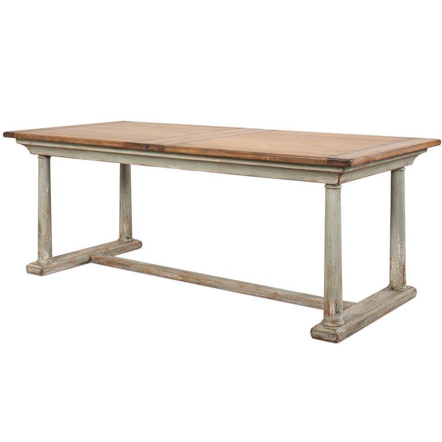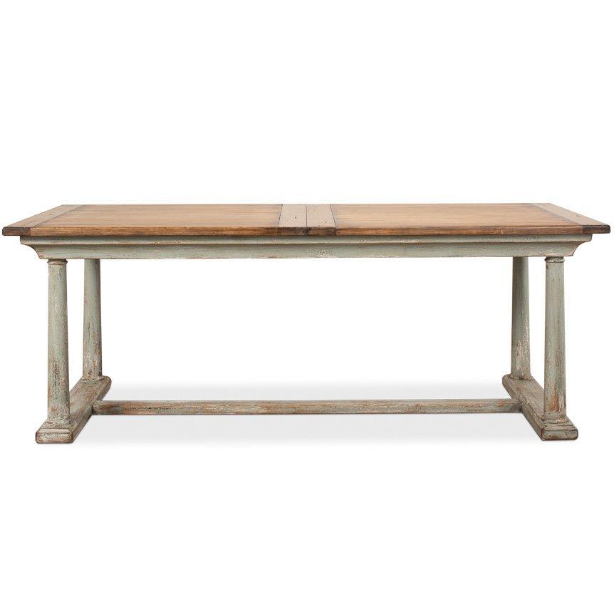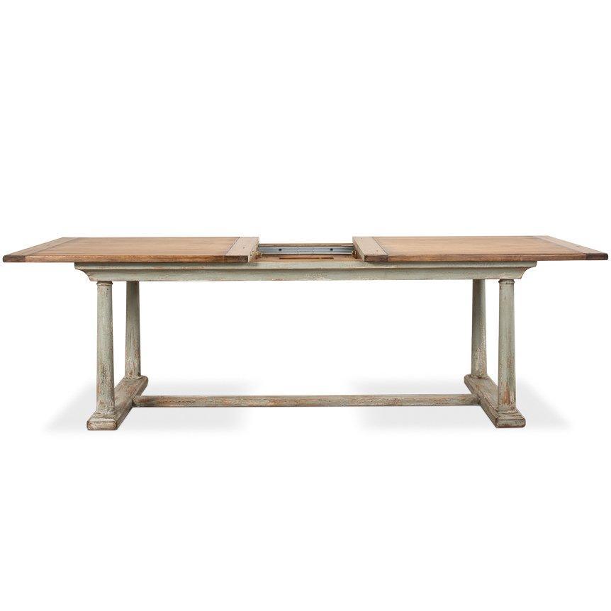 • Realizzato in legno massello • Piano in legno tinto • Base verde salvia anticata • Estensibile da 82' a 100'