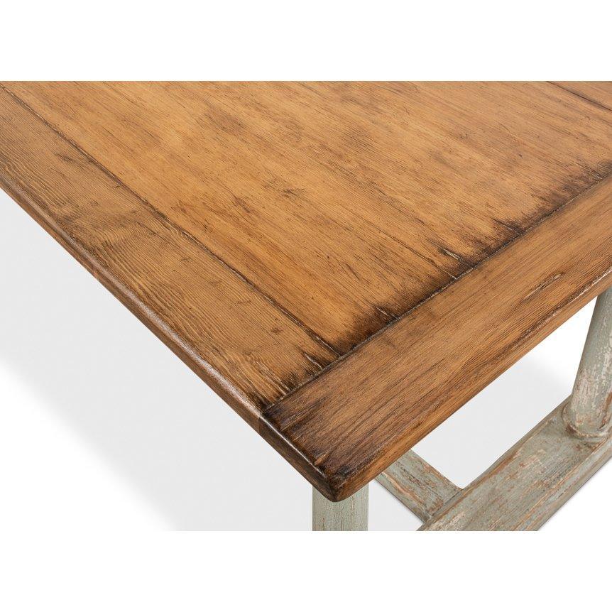 Immergetevi nel calore del tavolo da pranzo Sage Farm, caratterizzato da un piano in legno rustico riccamente tinto e una base verde salvia anticata. Immaginate riunioni di famiglia con pasti abbondanti attorno a questo tavolo da pranzo rustico. Questo splendido tavolo in stile rustico è estensibile da 25 a 30 metri e può ospitare fino a 10 persone. Basta aprire i lati e l'estensione si solleva al centro per aggiungere altri 5,5 metri in pochi secondi.