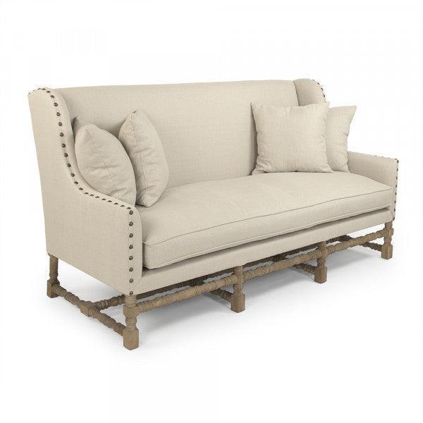 La panca con borchie in lino naturale provenzale offre il massimo comfort e versatilità. Con un rivestimento in lino beige crema naturale, lo schienale rigido, i cuscini morbidi e lo stile wingback si adatteranno perfettamente a qualsiasi stile di arredamento. Una cornice intagliata a mano e un'ampia finitura con borchie forniscono il tocco finale. Utilizzatela al posto delle tradizionali sedie da pranzo o posizionatela in un soggiorno per creare un ambiente confortevole in cui gustare un tè pomeridiano o leggere un buon libro.