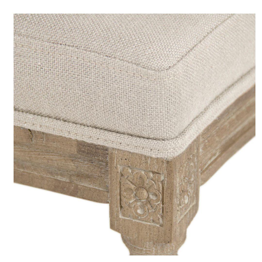 Caratteristiche: • Finitura rovere grigio sbiancato • Tessuto di lino 100% naturale • Design in legno massello • Altezza seduta: 26'