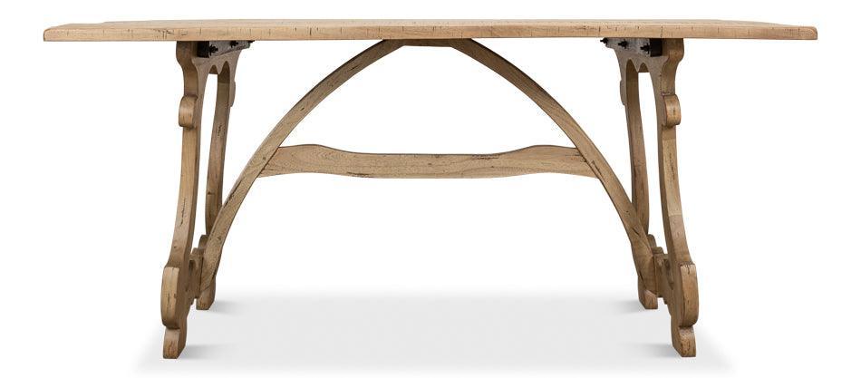 Immergiti nell'atmosfera della vecchia Provenza con questo tavolo da pranzo in legno invecchiato, caratterizzato da una rilassante finitura in legno di deriva. Un esclusivo telaio intagliato e aperto lascia ampio spazio per le gambe agli ospiti che desiderano indugiare a gustare un delizioso pasto. Questo tavolo può essere utilizzato anche come tavolo d'ingresso per esporre quadri e oggetti preziosi.