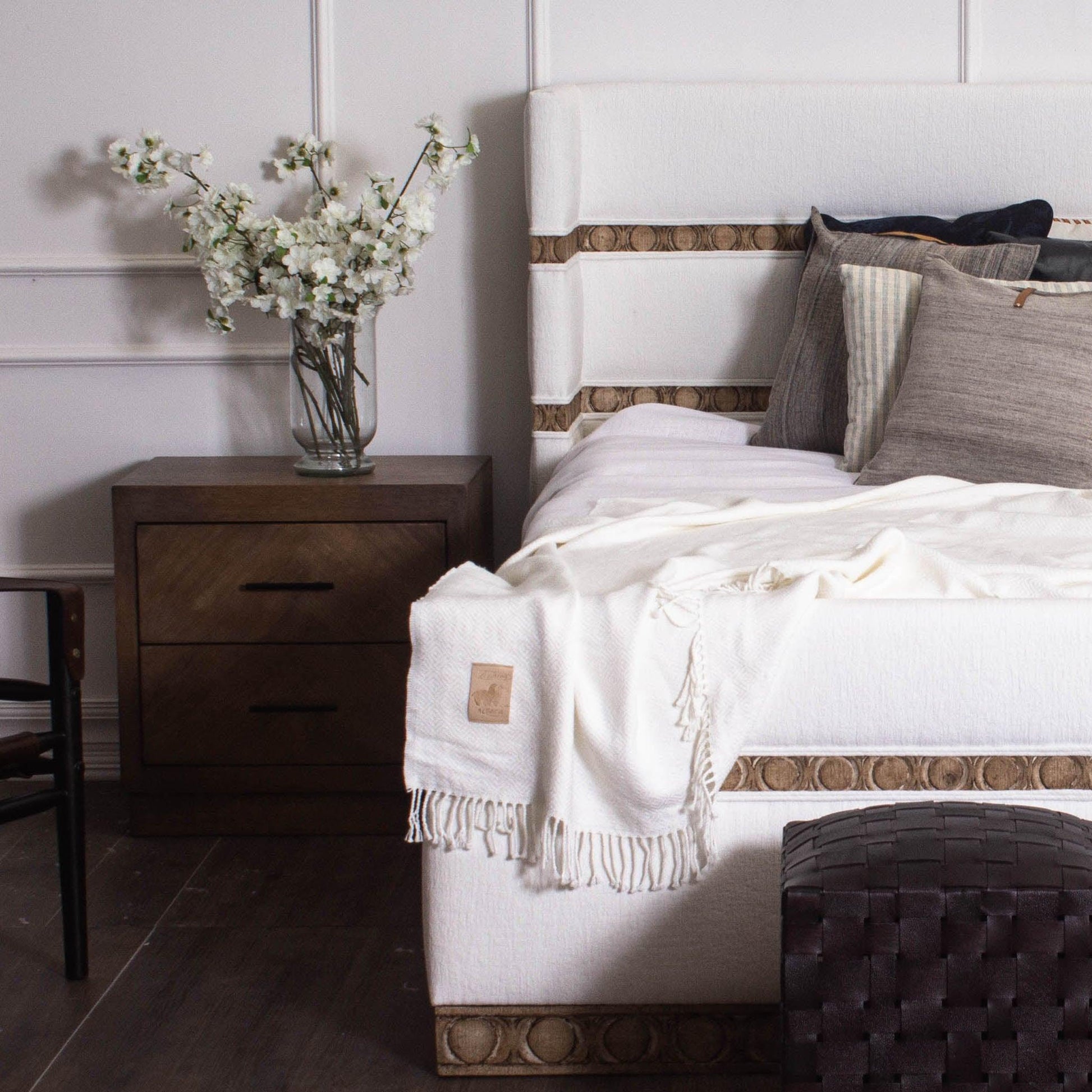 Il letto imbottito Contemporary Gemini coniuga il talento artigianale, visibile nelle strisce di legno naturale che ricoprono la testiera e i piedi, con un pezzo completamente imbottito, in un look armonioso e raffinato, unico nel suo genere. Realizzato in legno massello e rivestito in tessuto ad alta resistenza. e tessuto di design, questo letto unico fa una grande impressione ed è ultra confortevole.