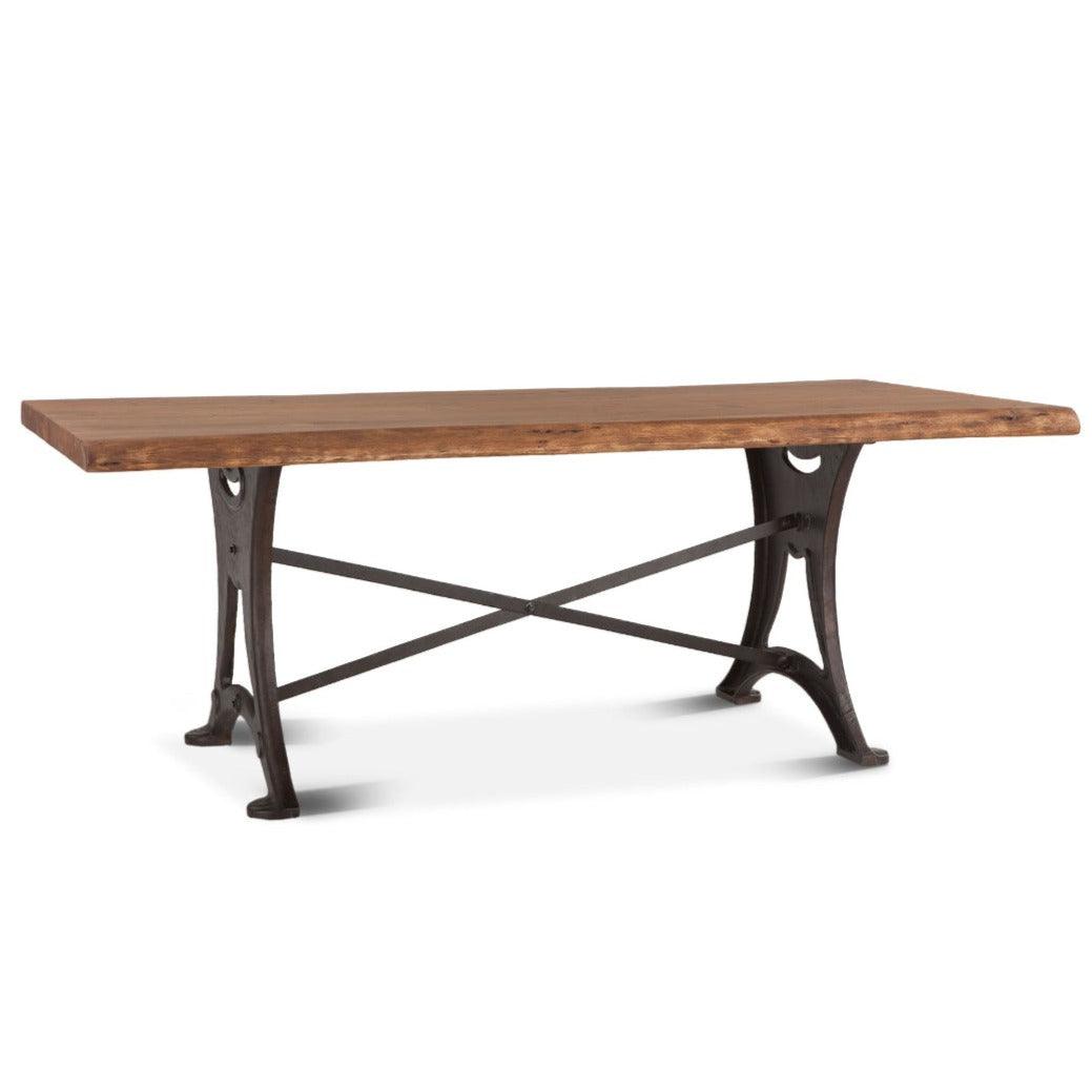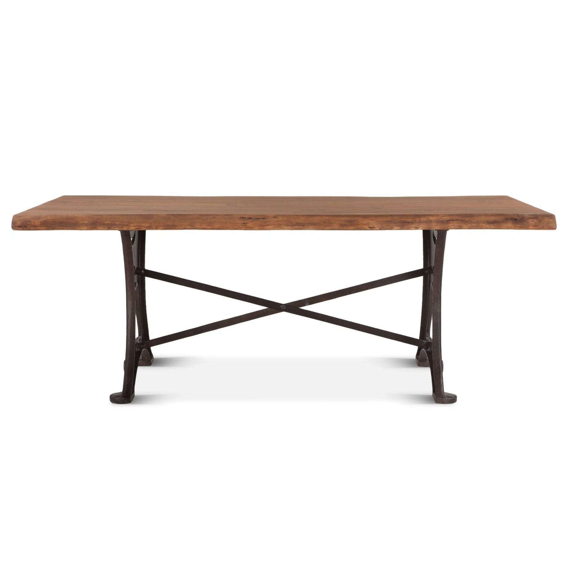 Tavolo da pranzo con piedistallo in ferro forgiato in legno rustico