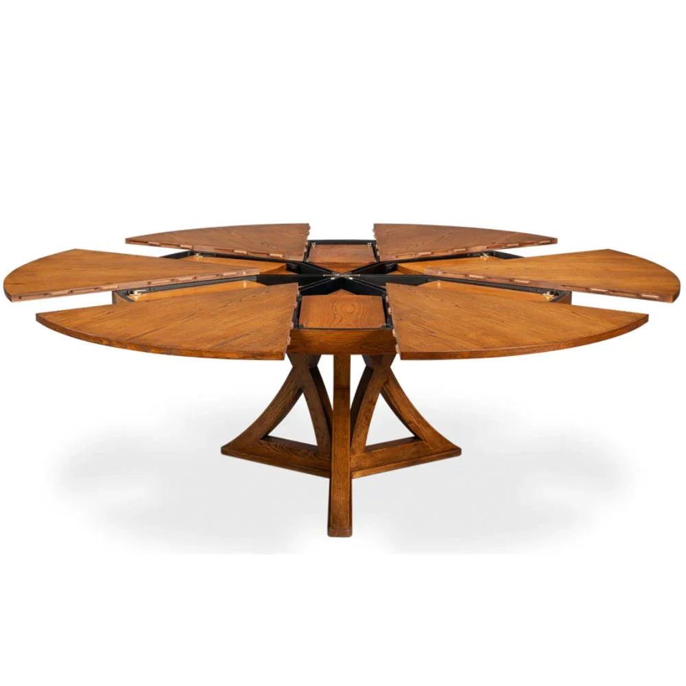 • Tavolo da pranzo estensibile Jupe • Costruzione in rovere e ferro • L'altezza è di 30' • Finitura marrone visone