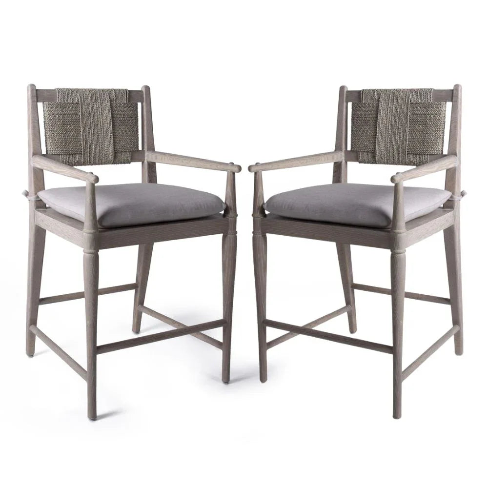 Lo sgabello da bar Cadiz Rush Back offre stile, texture e carattere per ravvivare il tuo bancone o il tuo bar. Questo sgabello è realizzato in legno massello con schienale in giunco e seduta in soffice lino egiziano. Il contrasto tra lo schienale in giunco e il cuscino rende questo sgabello da bar perfetto per la tua cucina luminosa e accogliente. Questo sgabello naturalmente sofisticato sarà protagonista di innumerevoli pasti e conversazioni nella tua casa.